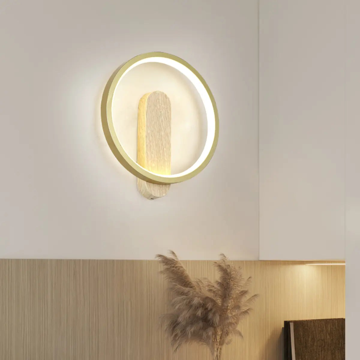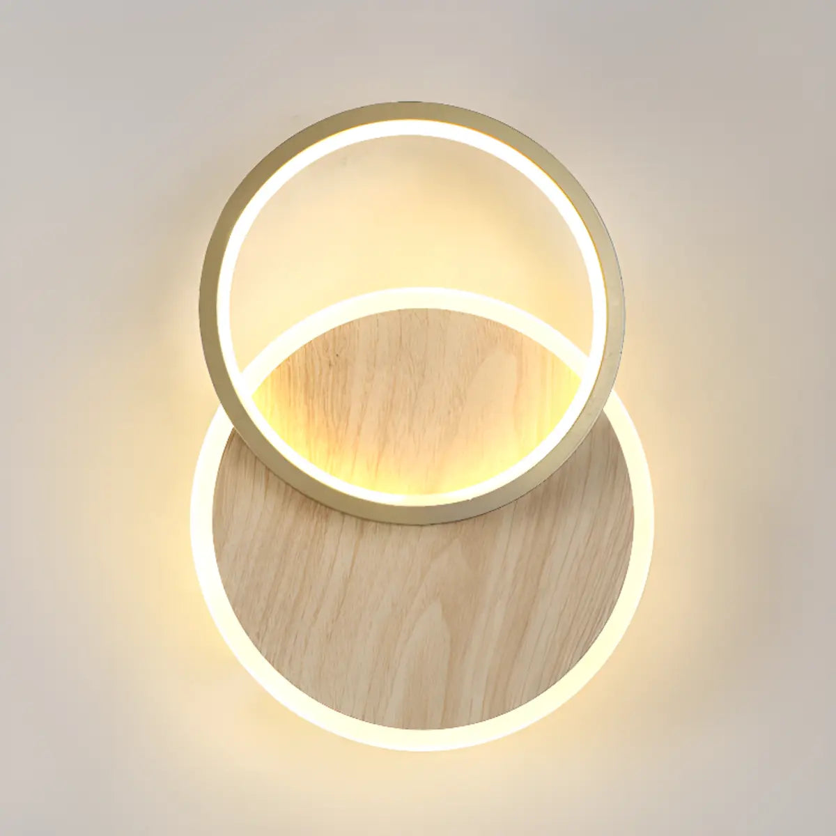 ZOWALA - Contemporary 2-Light Wood Color Circle Wall Sconce