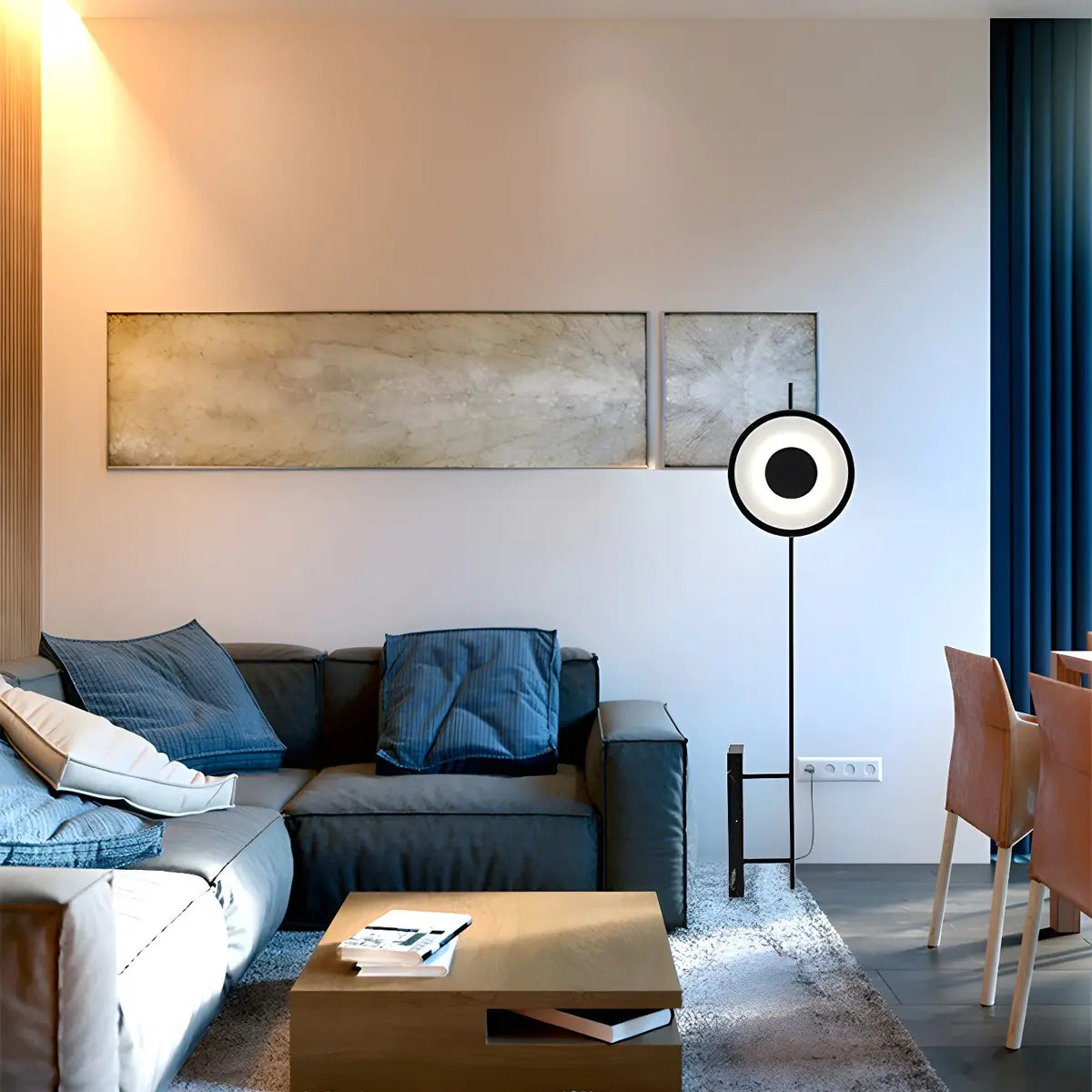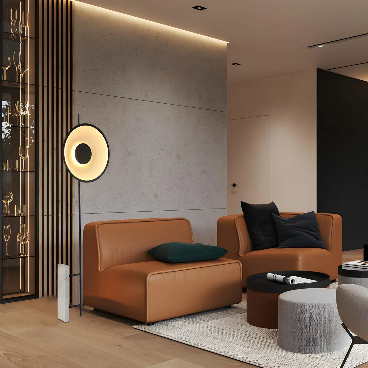 ZOWALA - Contemporary Black Circular Marble Base Floor Lamp