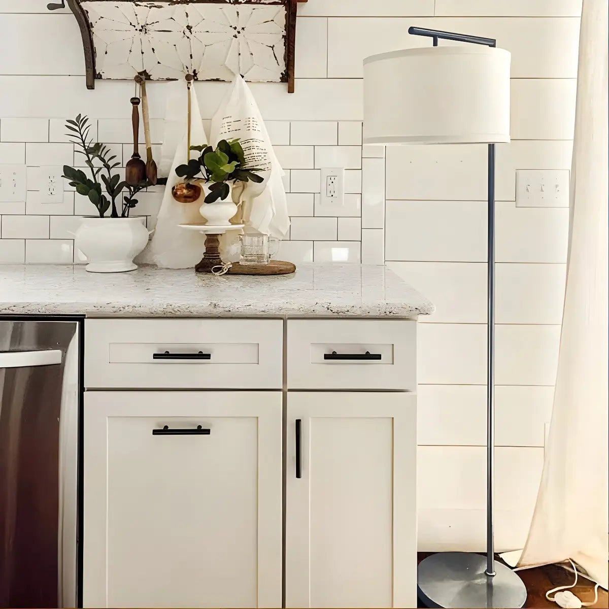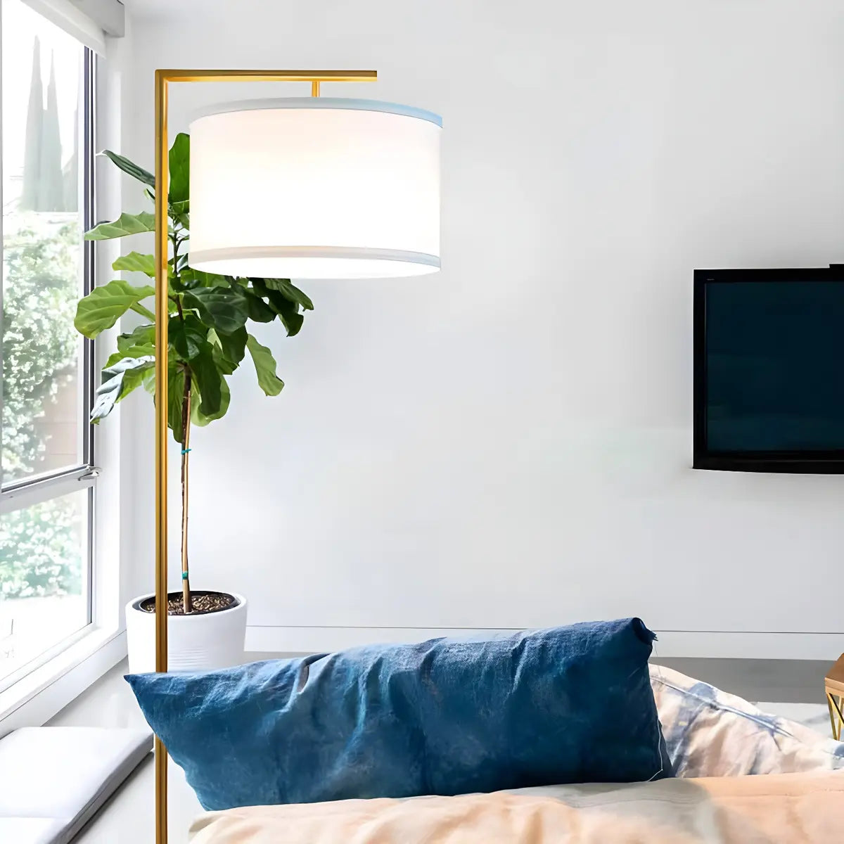 ZOWALA - Contemporary Black Fabric White Barrel Floor Lamp