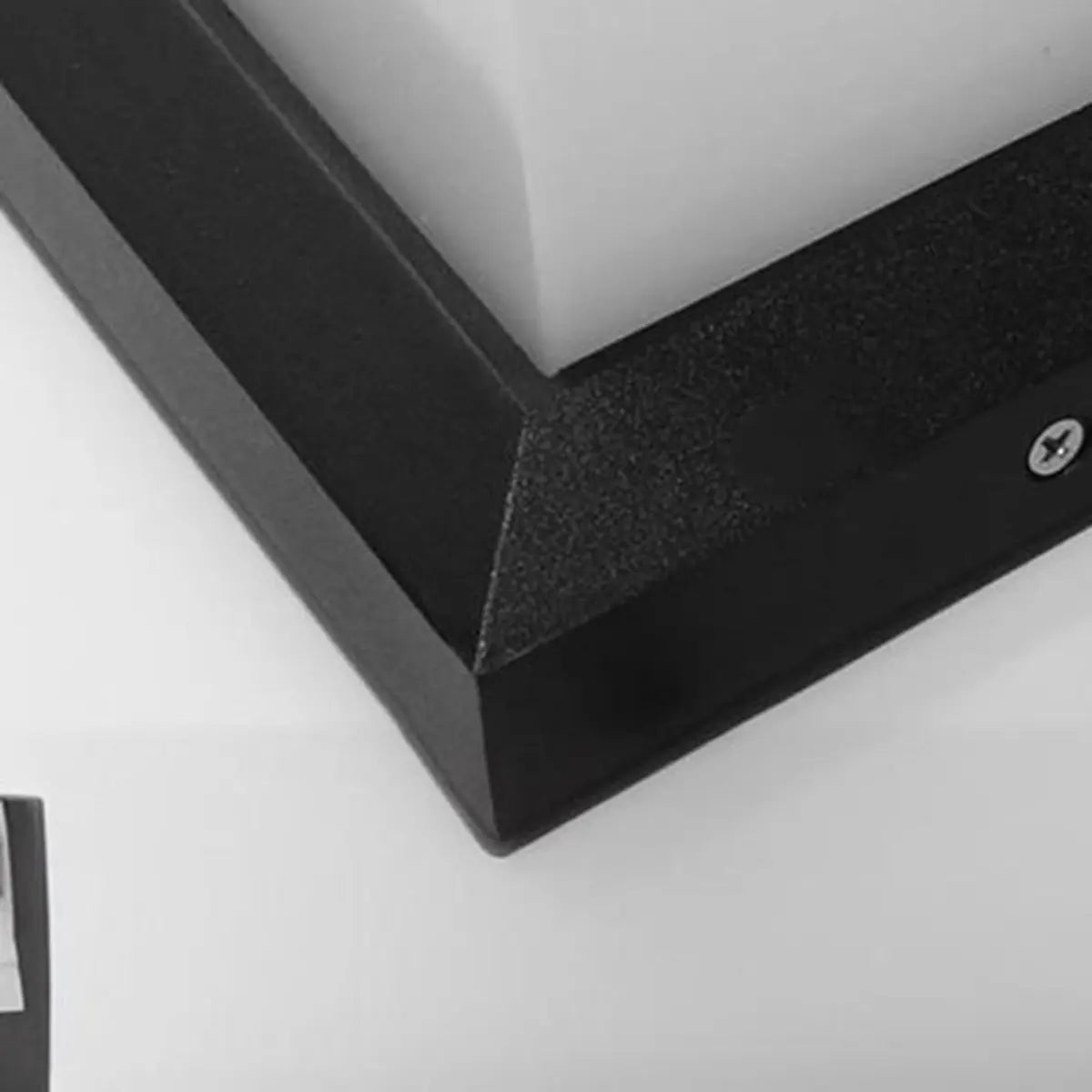 This modern outdoor wall lamp features a geometric design style. The metal material and black plastic lampshade show a simple and sophisticated appearance that suits many home decoration styles.