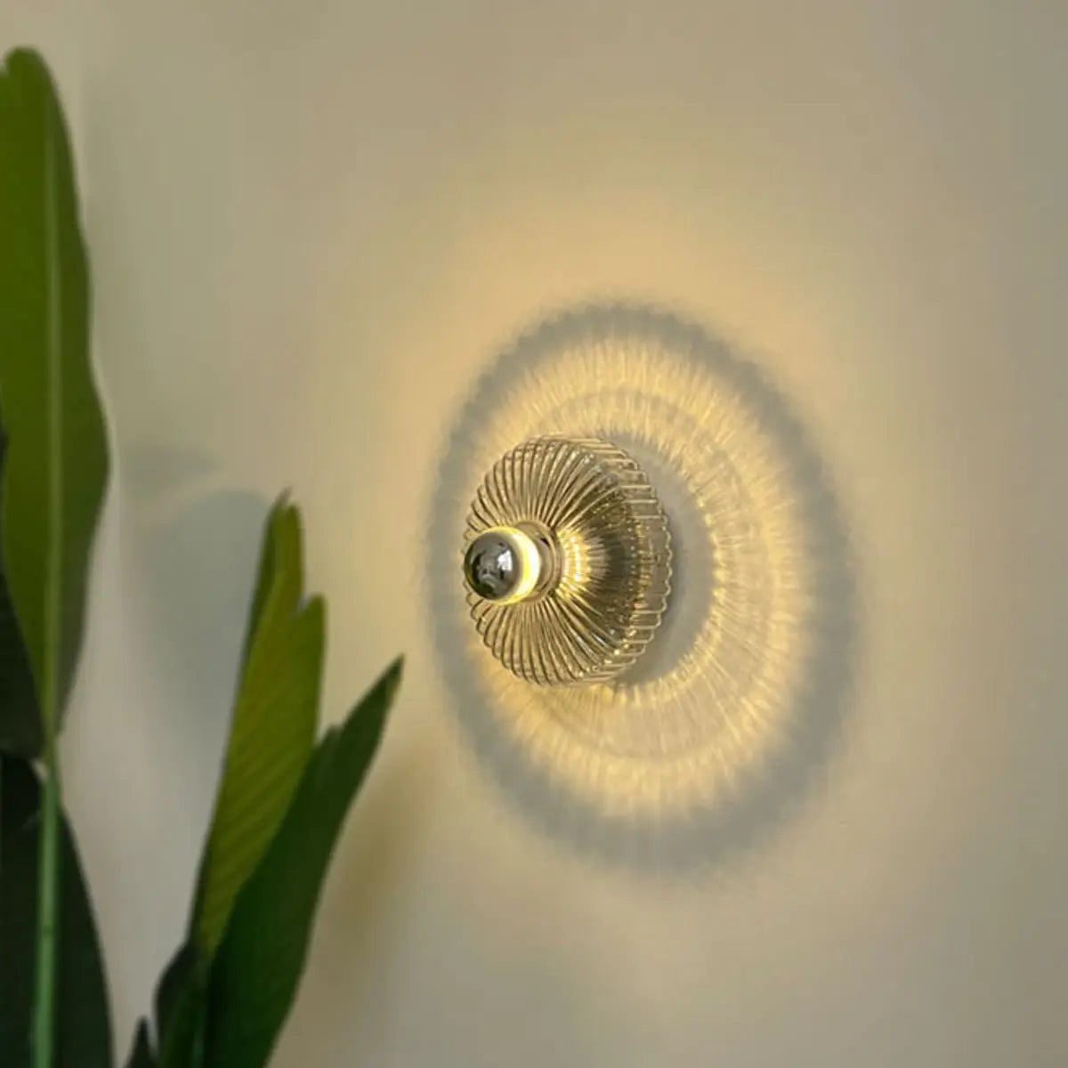 ZOWALA - Contemporary Chrome Ribbed Glass Round Wall Sconce