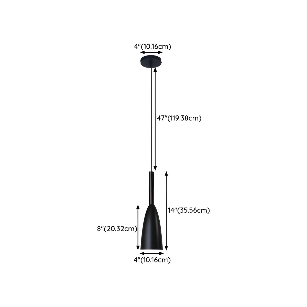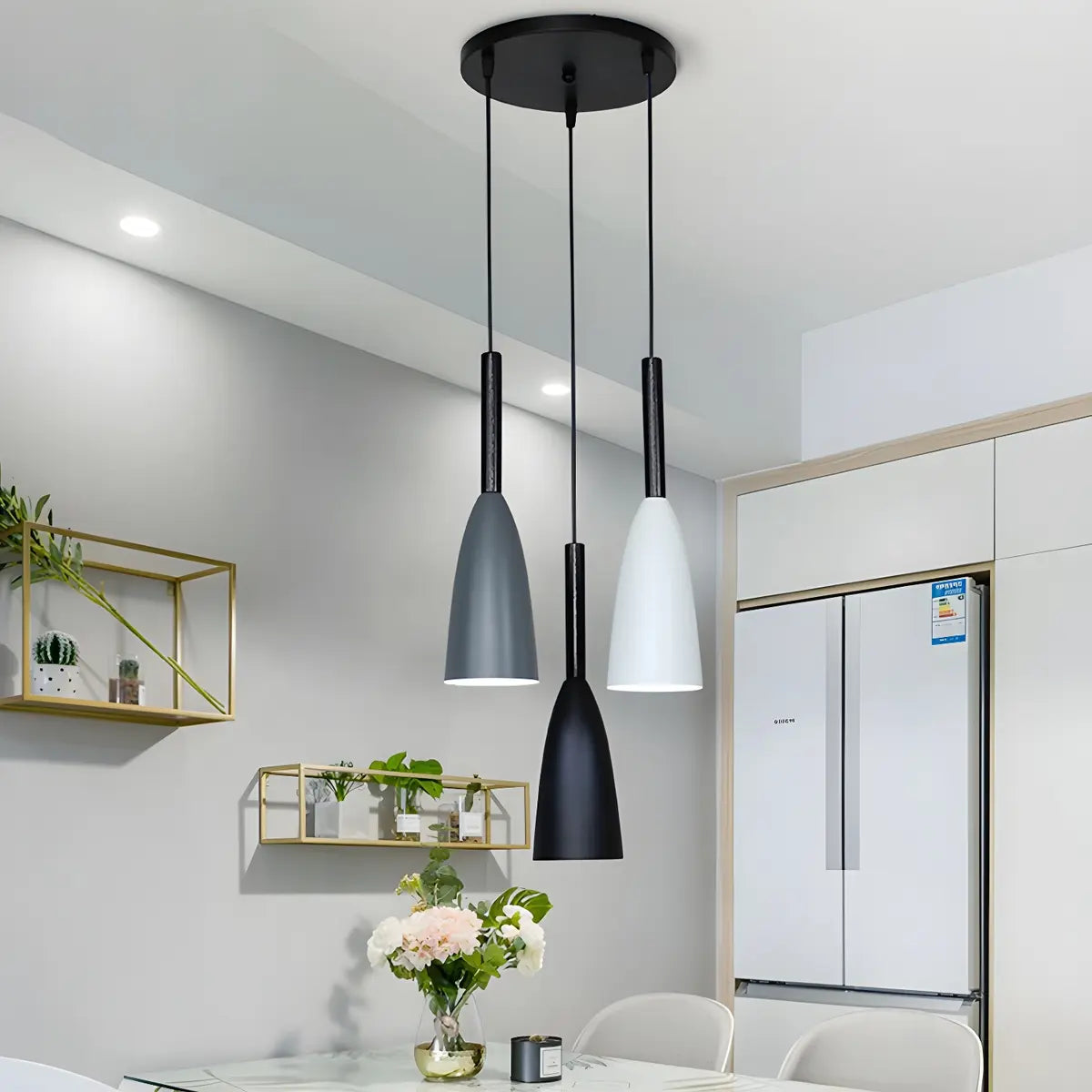 This pendant light displays a modern and simple style with an elegant metal cone design. The black iron lampshade is perfectly combined with the bright lines. It is both stylish and charming, creating a unique visual focus for the kitchen.