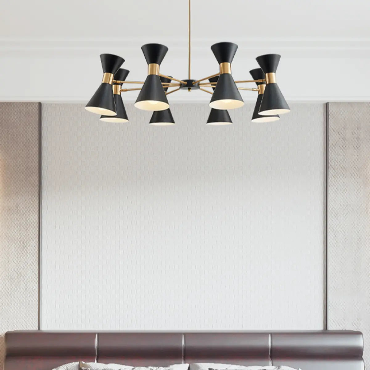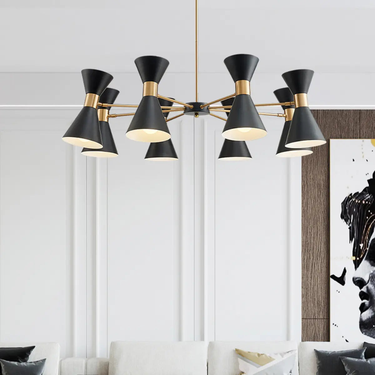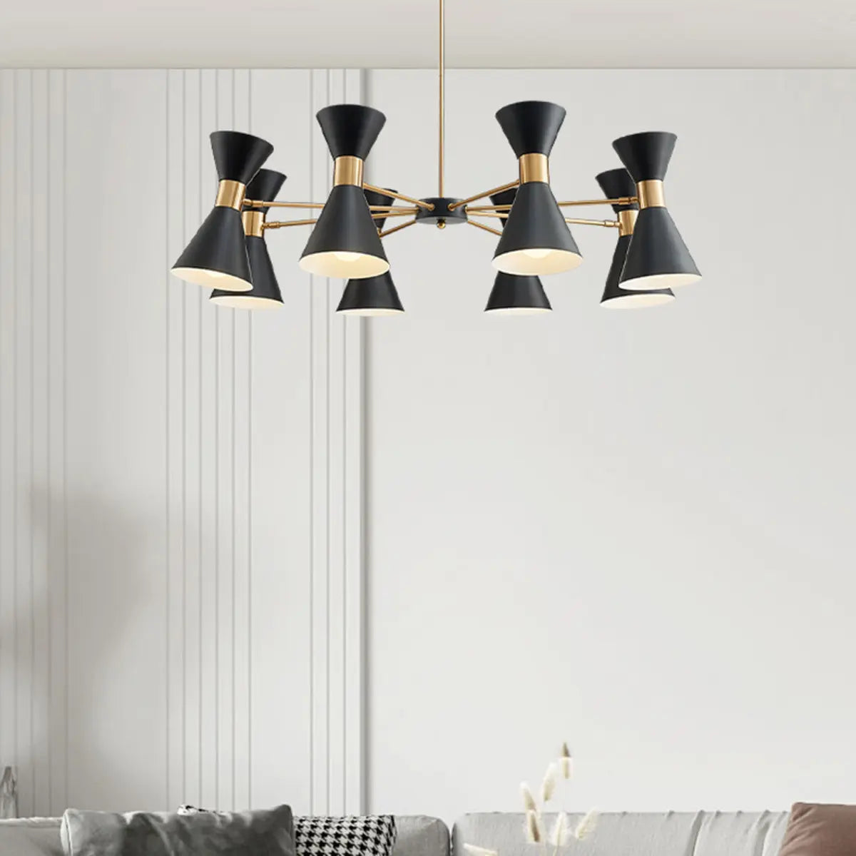 ZOWALA - Contemporary Black Gold Iron Cone Large Chandelier