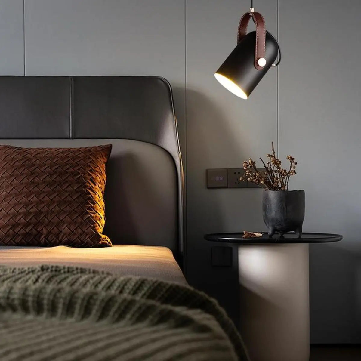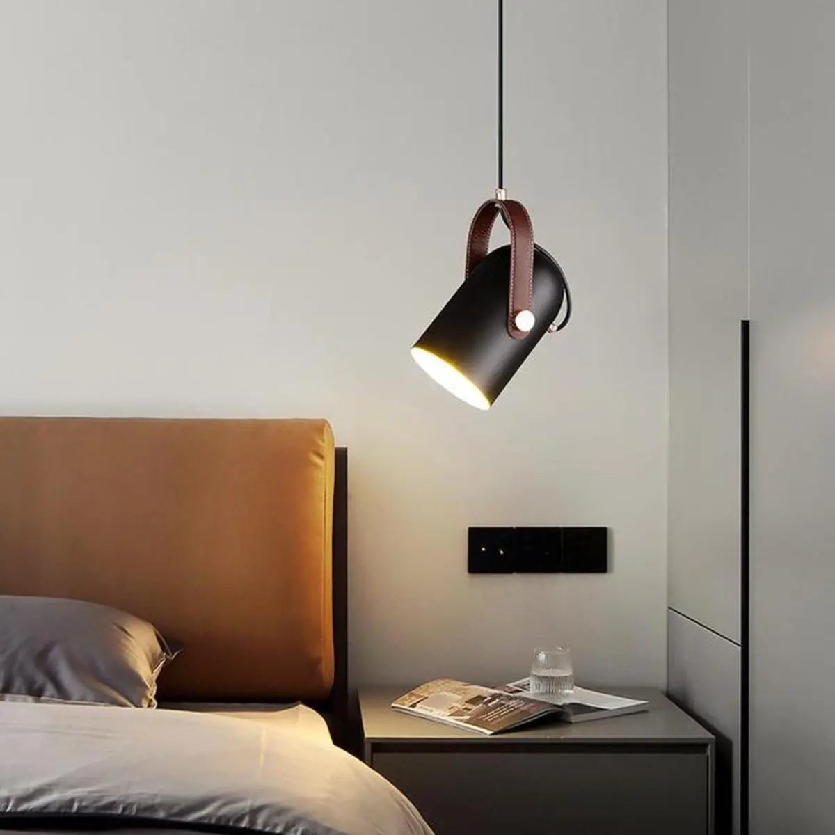 ZOWALA - Contemporary Leather Metal Cylinder Pendant Light