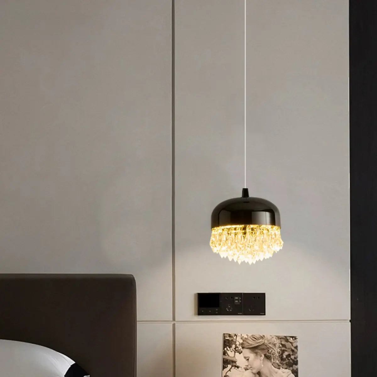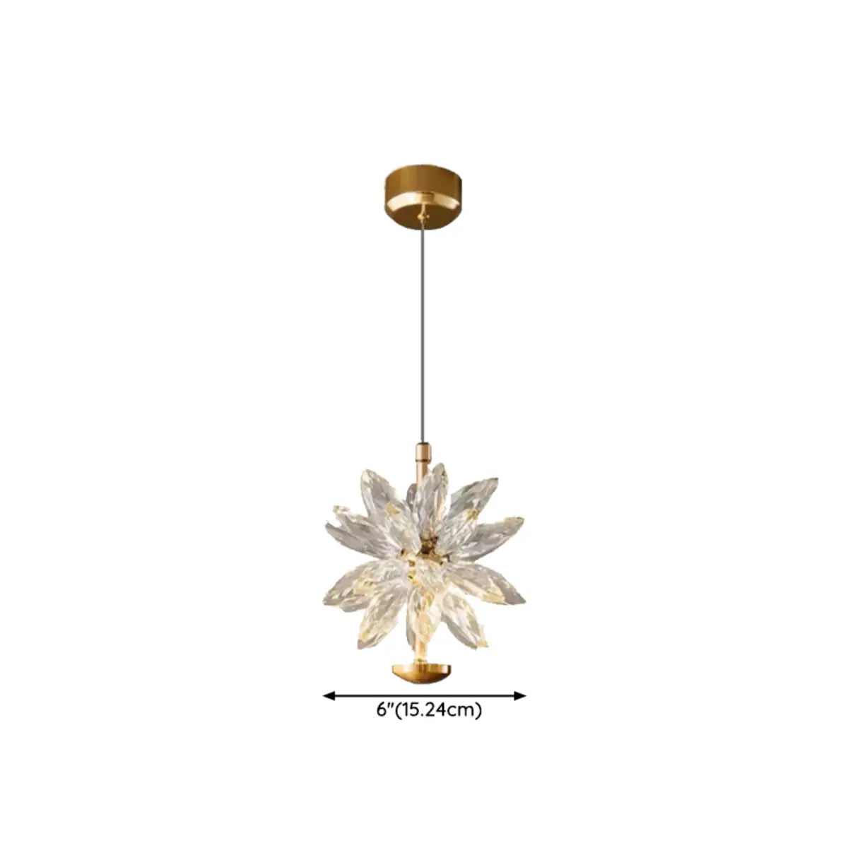 This pendant light features a flower-shaped crystal lampshade design, showing the beauty of modern style. The transparent crystals surround it like petals, reflecting the bright light, adding an artistic and fashionable atmosphere to every corner.