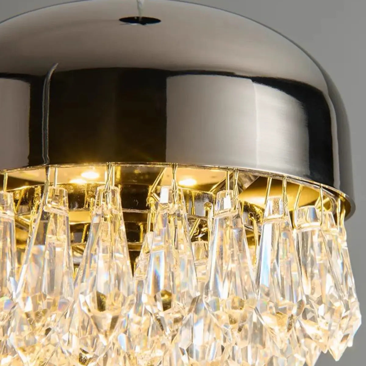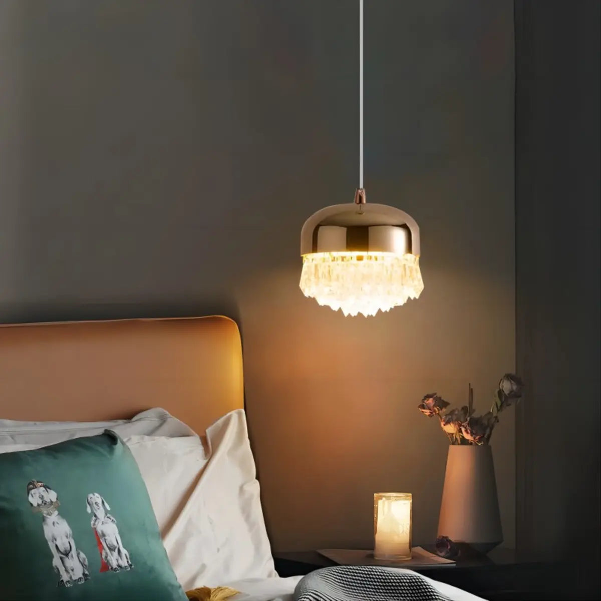 - The lampshade is made of high-quality crystal, and the light is refracted through the crystal to create multiple light and shadow effects, adding visual depth and layering.