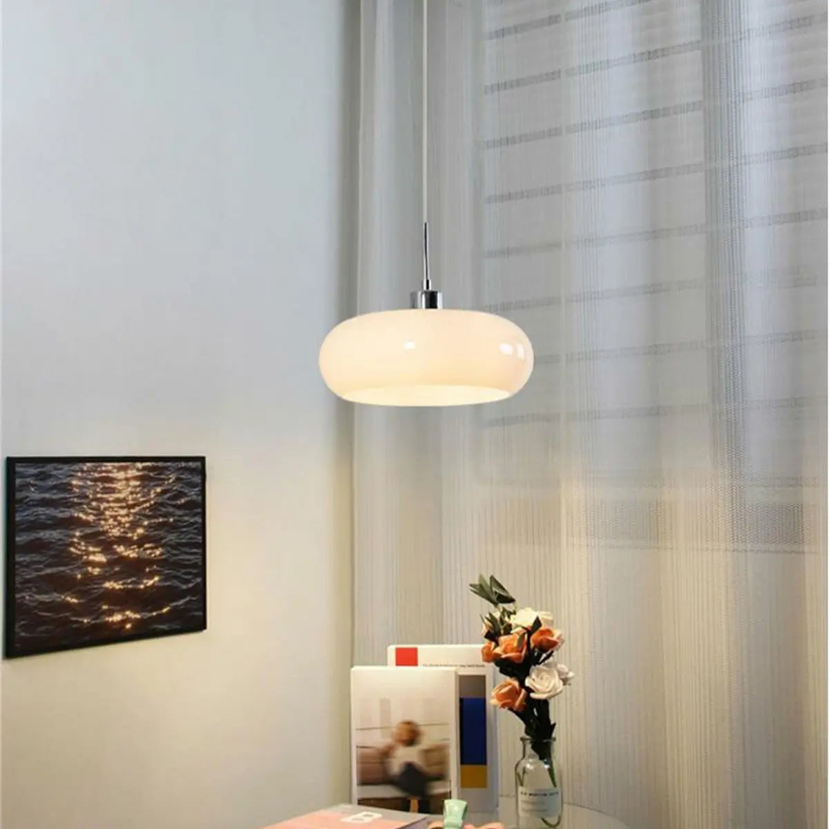 This orange glass pendant light becomes the focal point of the kitchen with its bright hue and modern design. The delicate glass lampshade is like a touch of warm sunshine, illuminating every corner and enhancing the visual beauty of the space. This chandelier is not only a light source, but also a work of art that can be easily integrated into various styles of home decoration.