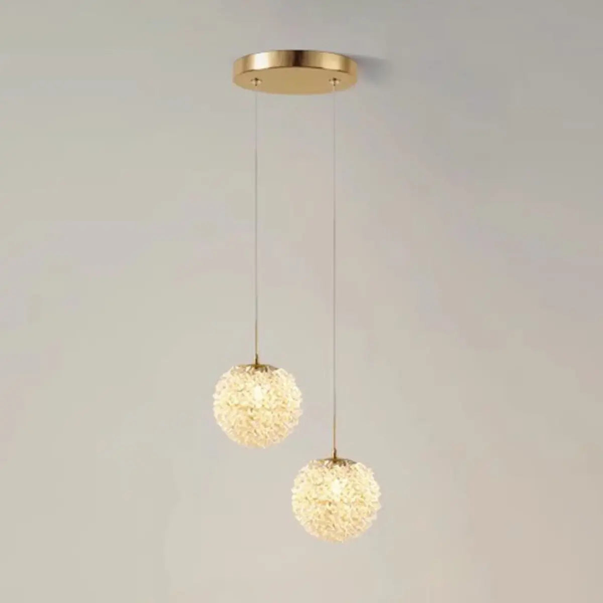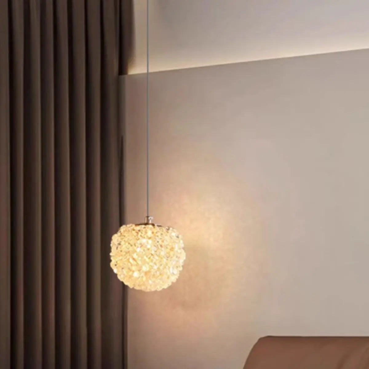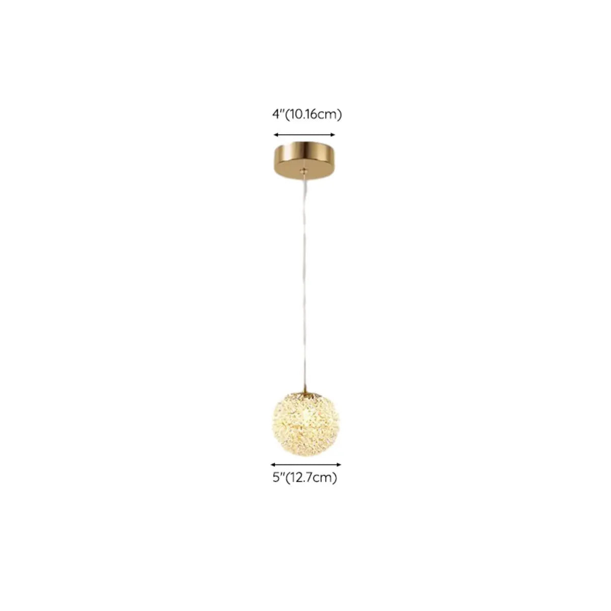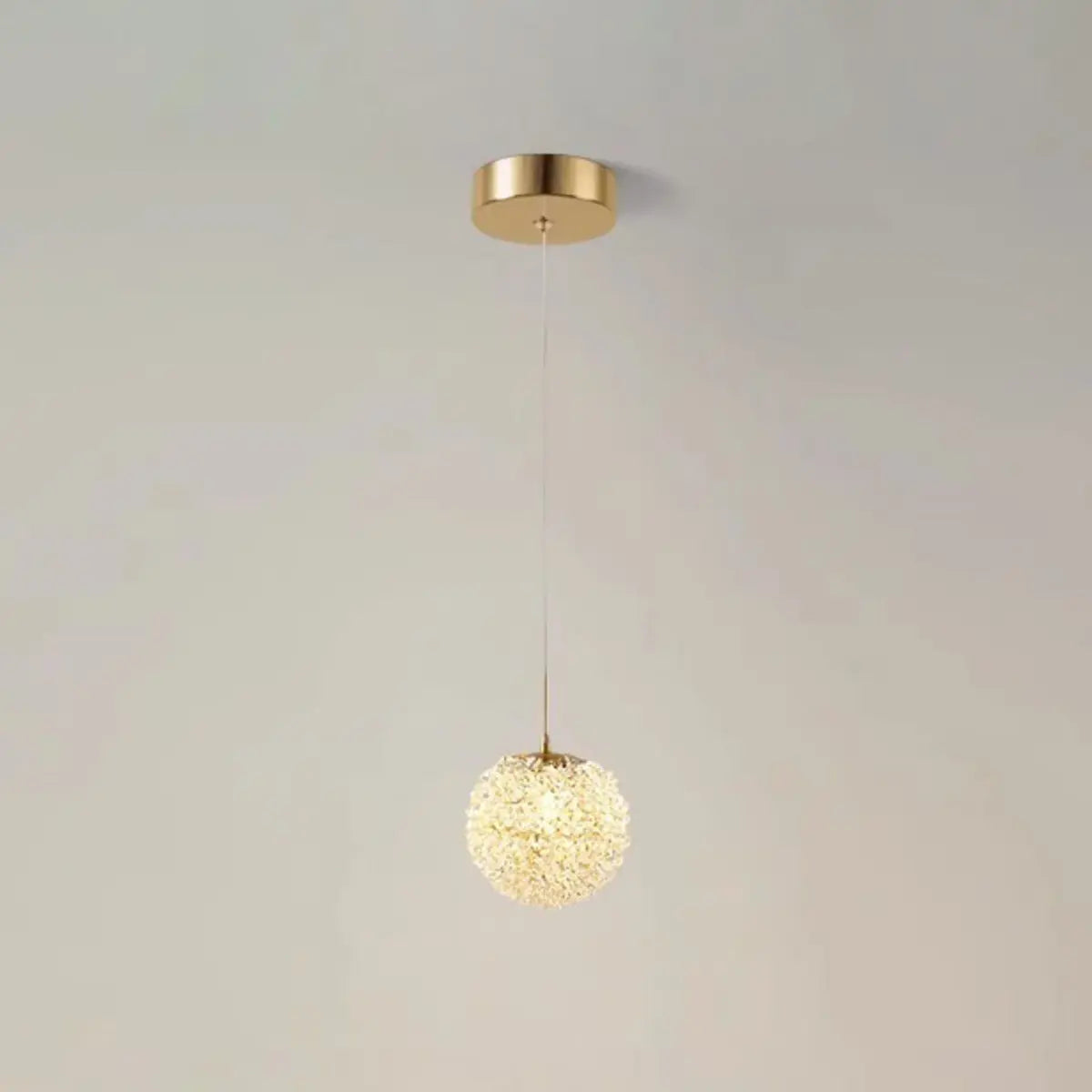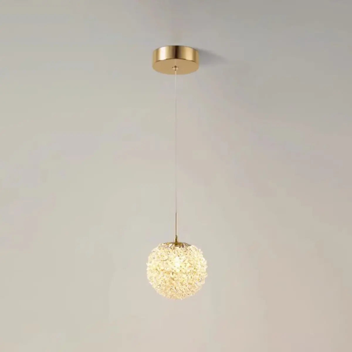 Featuring exquisite metalwork and a sparkling crystal globe, this pendant lamp is a perfect blend of modern style and classic elements. The golden luster shimmers under the light, adding a touch of luxury and elegance to any space. Whether it is a kitchen island or a corner of the room, this lamp can be the finishing touch to enhance the beauty of the overall decoration.