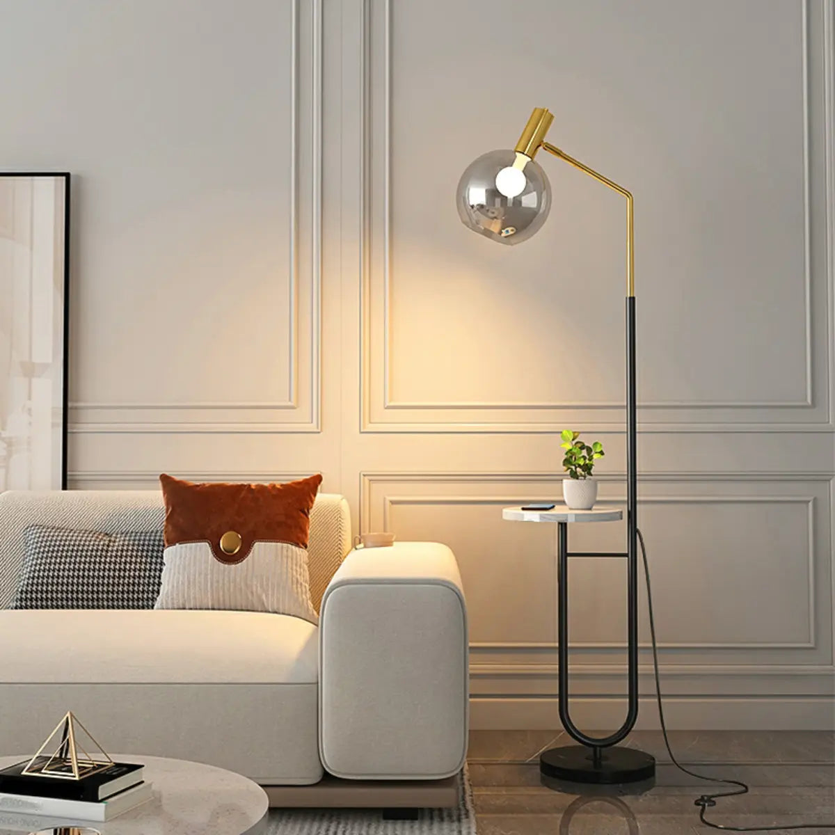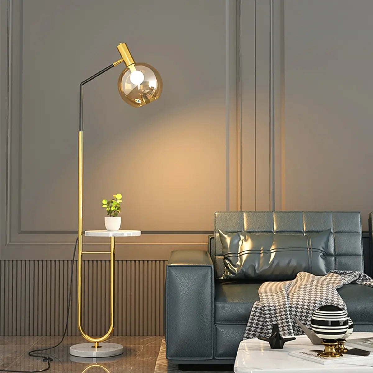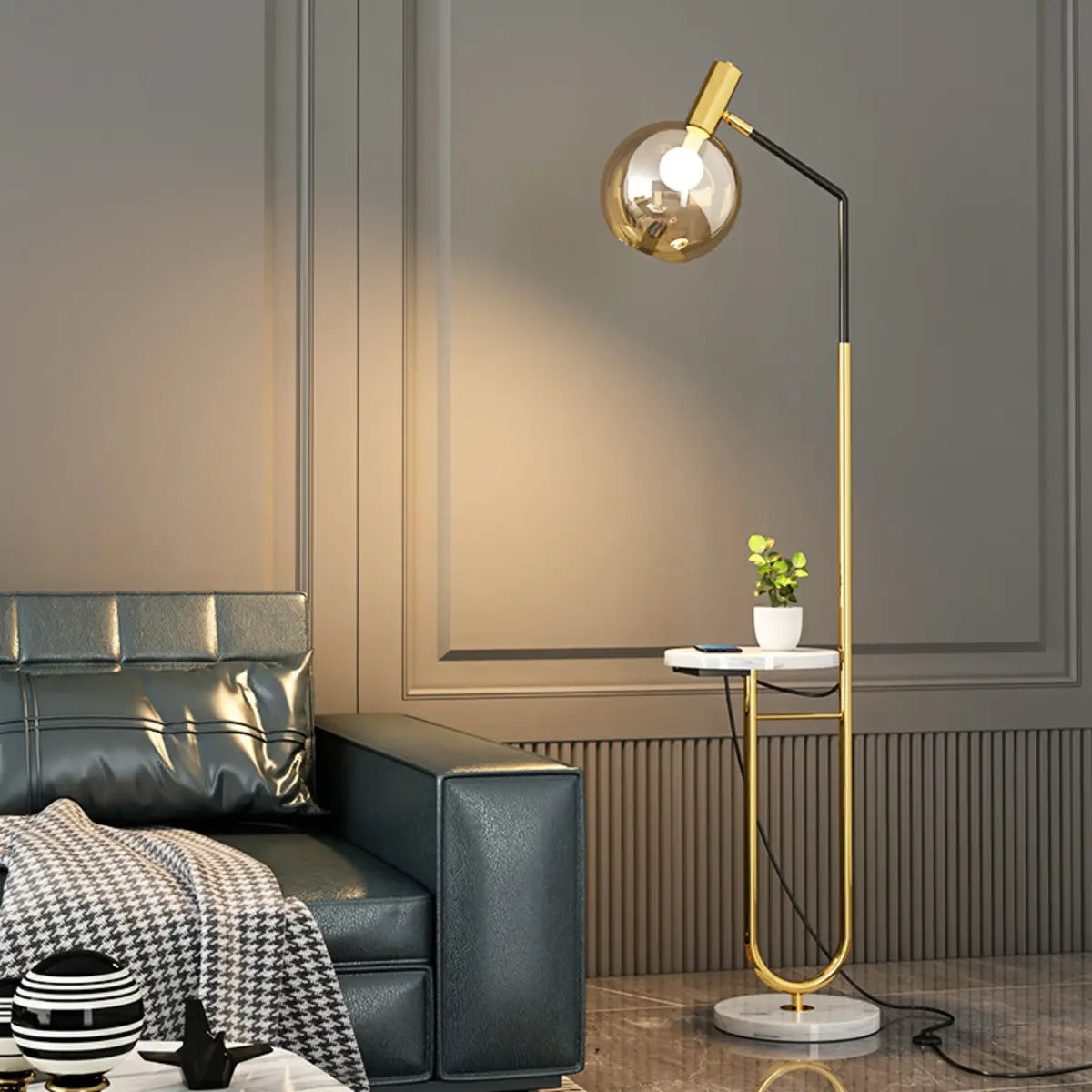 ZOWALA - Contemporary Gold Glass Globe Floor Lamp with Table
