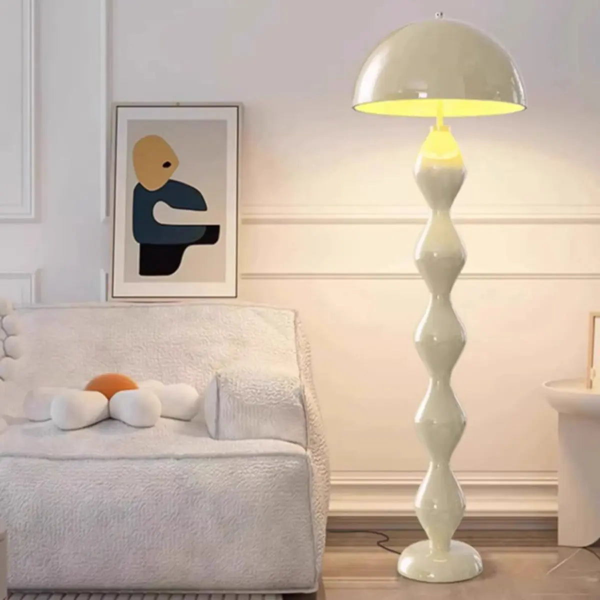 This ZOWALA floor lamp, with its unique mushroom-shaped design and modern art style, adds a touch of green plant-like freshness to your living room.