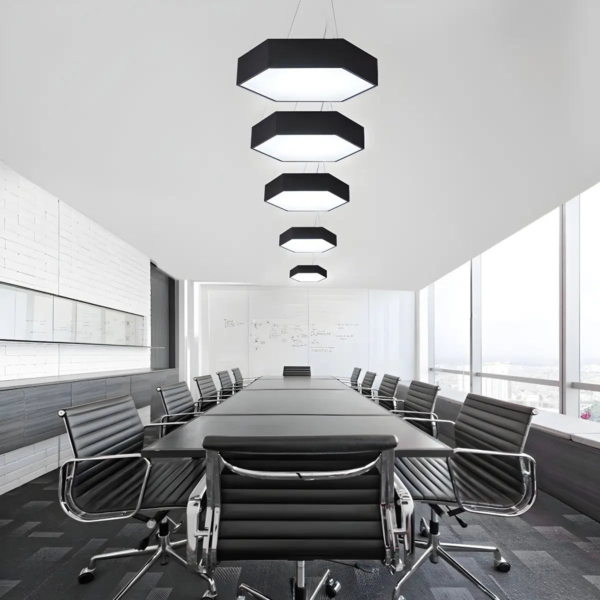 This chandelier, with its simple geometric hexagonal design combined with modern metal texture, presents an elegant and avant-garde visual effect, becoming the highlight of interior decoration. Its black appearance is not only easy to match with various interior styles, but also adds elegance and tranquility to the space.