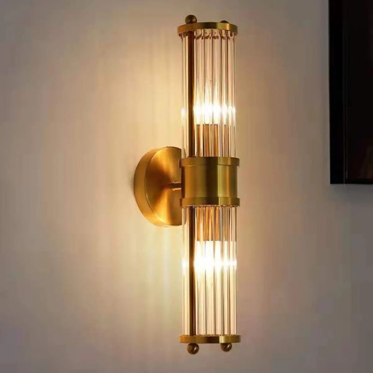 This modern style gold metal cylindrical wall lamp is both decorative and functional. It is suitable for use in spaces such as bathrooms, toilets or bedrooms to enhance the overall atmosphere.