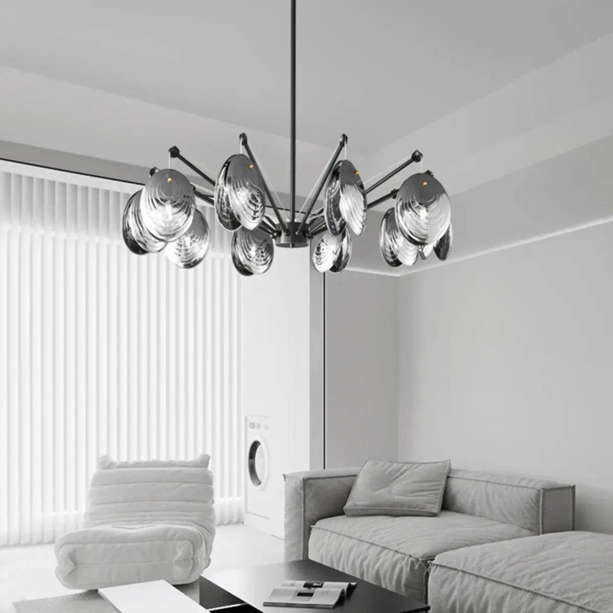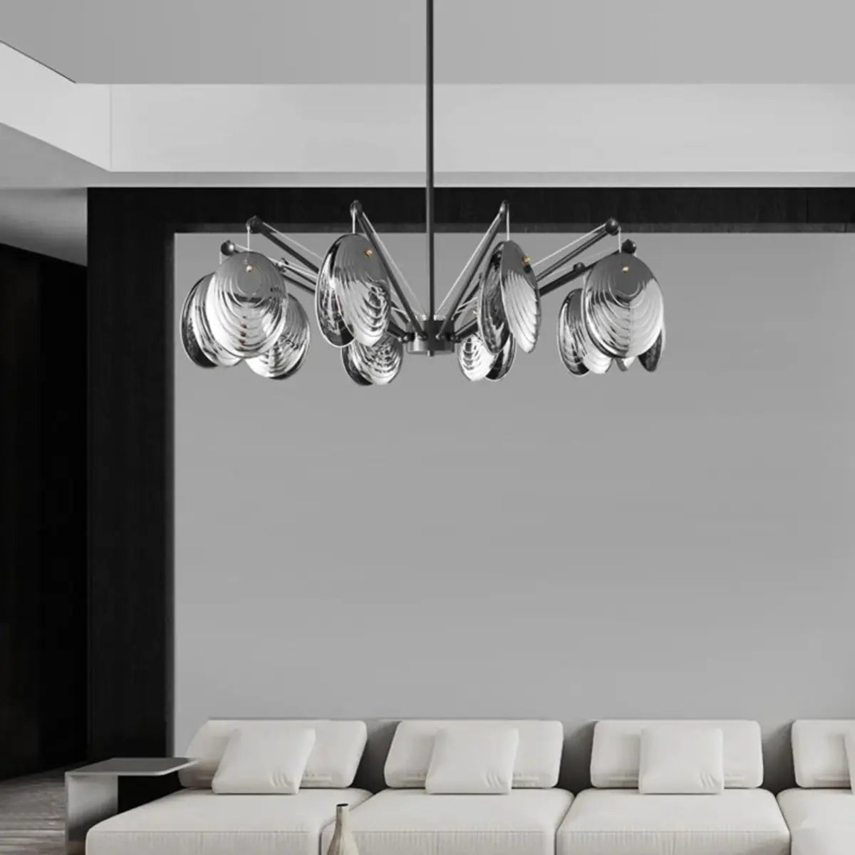 ZOWALA - Contemporary Chrome Shell Black Large Chandelier