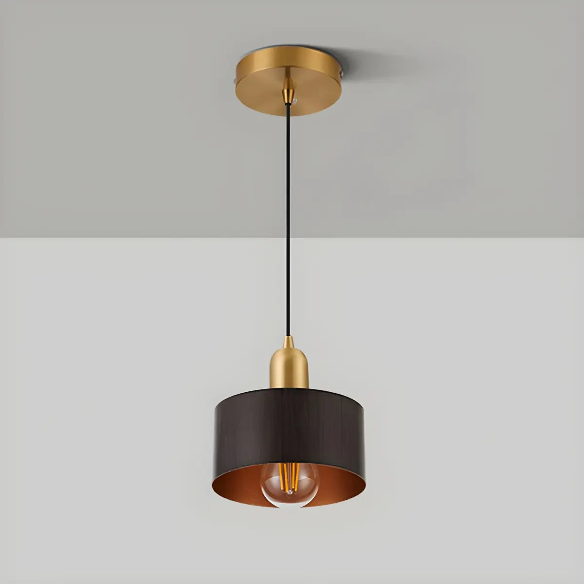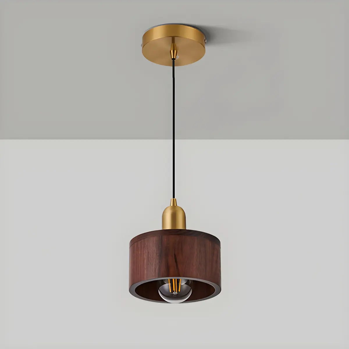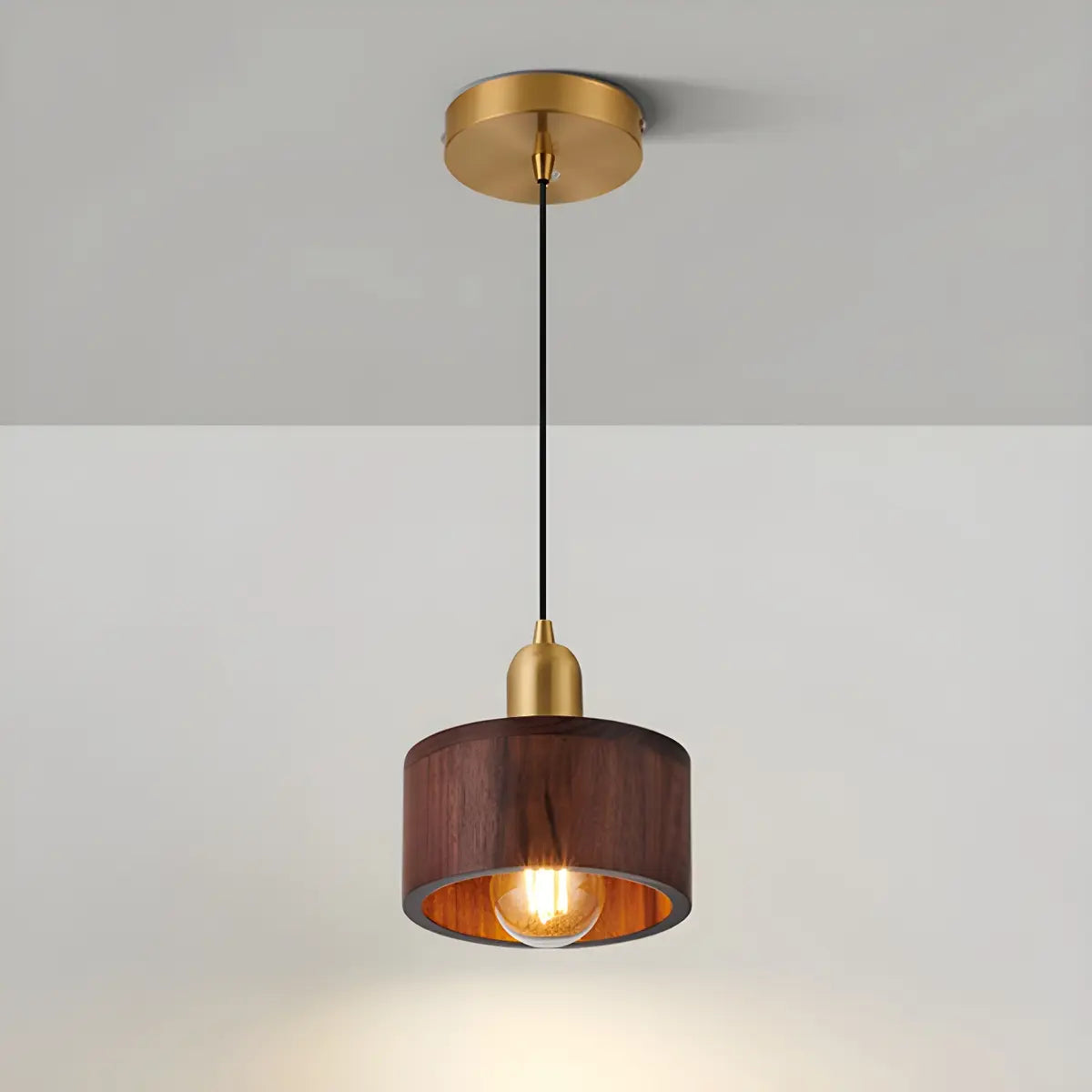 ZOWALA - Contemporary Walnut Solid Wood Drum Pendant Light