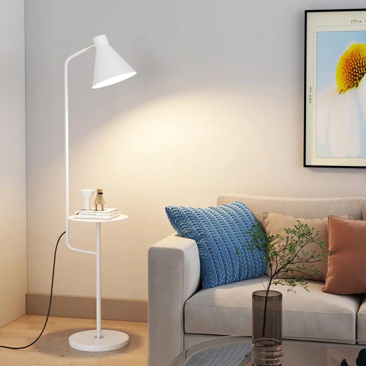 ZOWALA - Modern White Cone Floor Lamp with Table