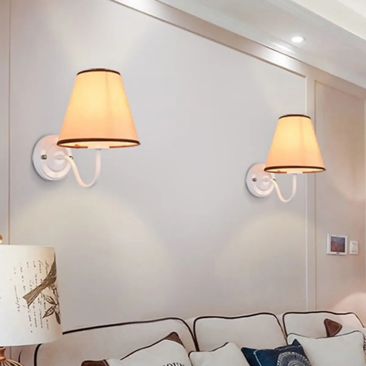 This wall lamp features a modern design style that combines metal and fabric materials for an elegant visual effect.