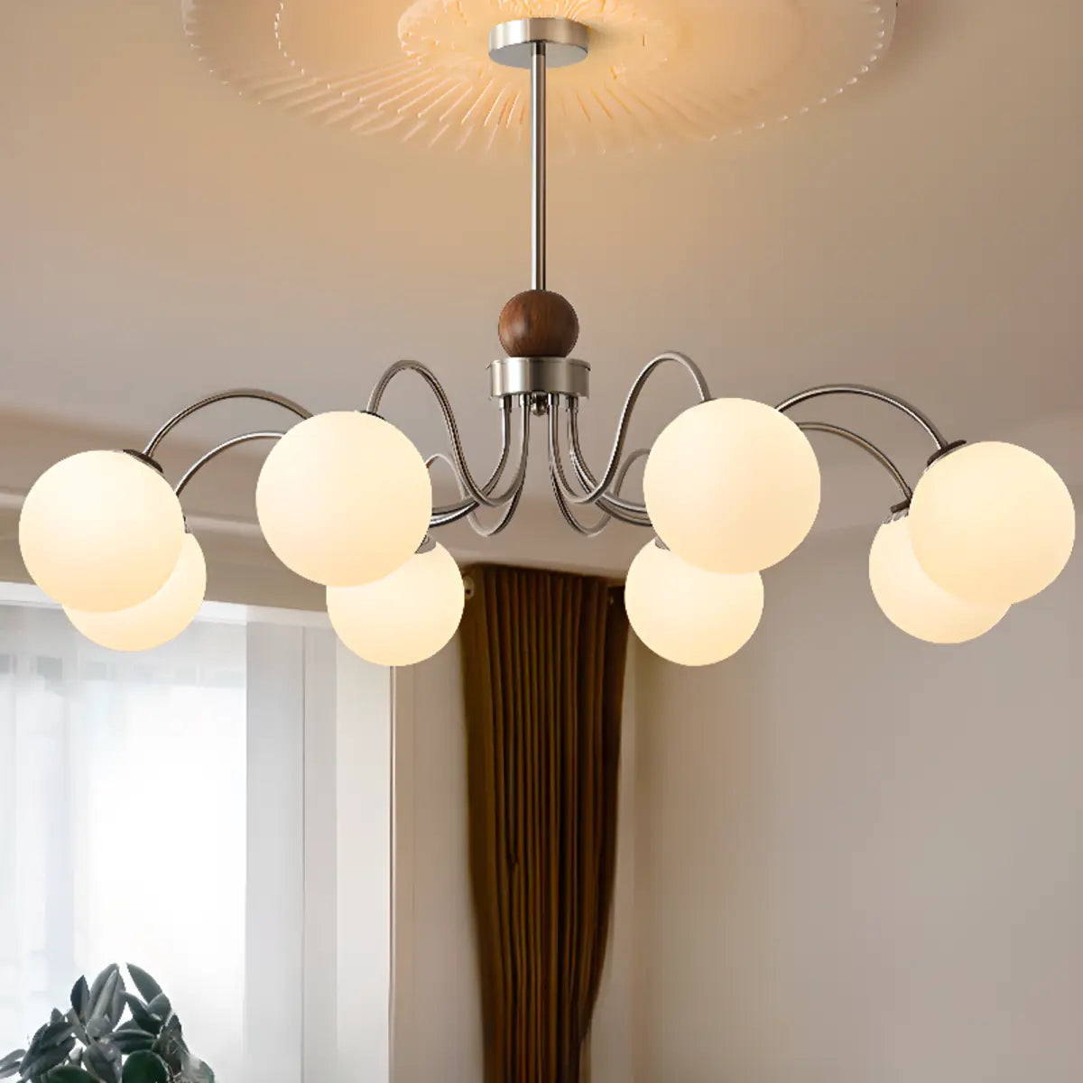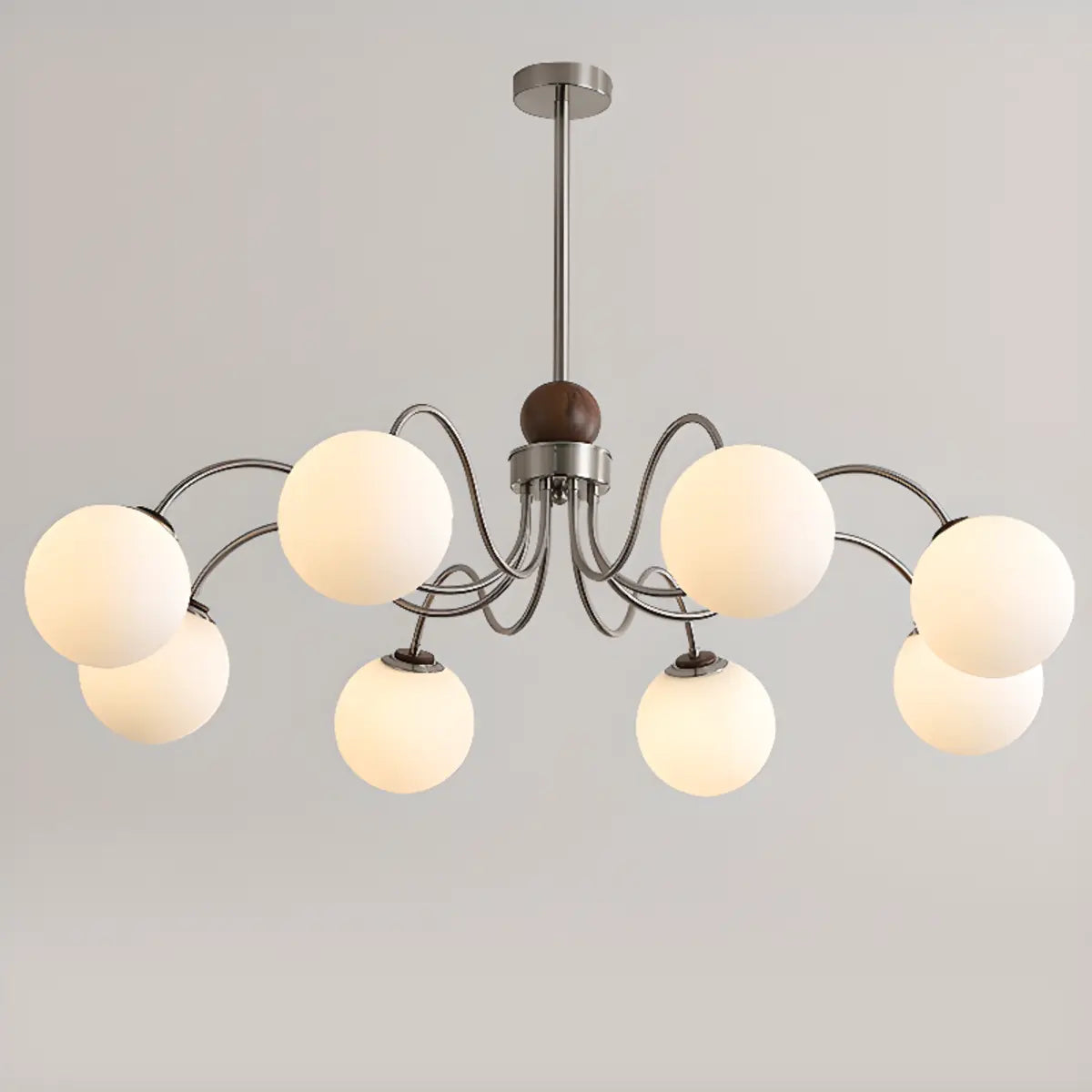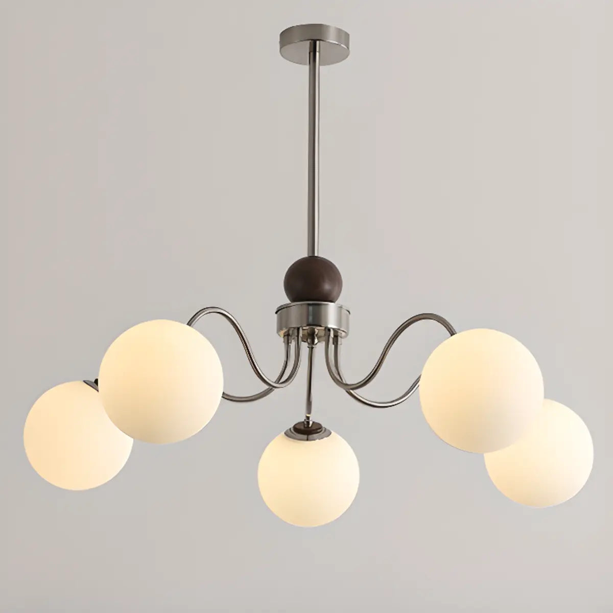 ZOWALA - Classic Nickel Wavy Arm Walnut Glass Ball Chandelier