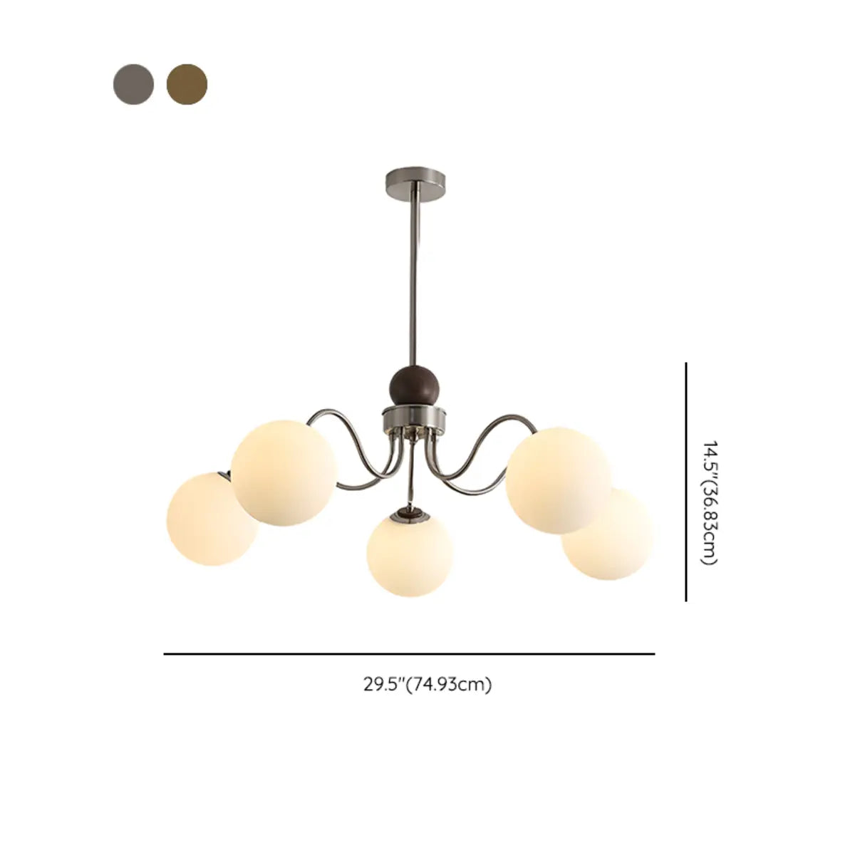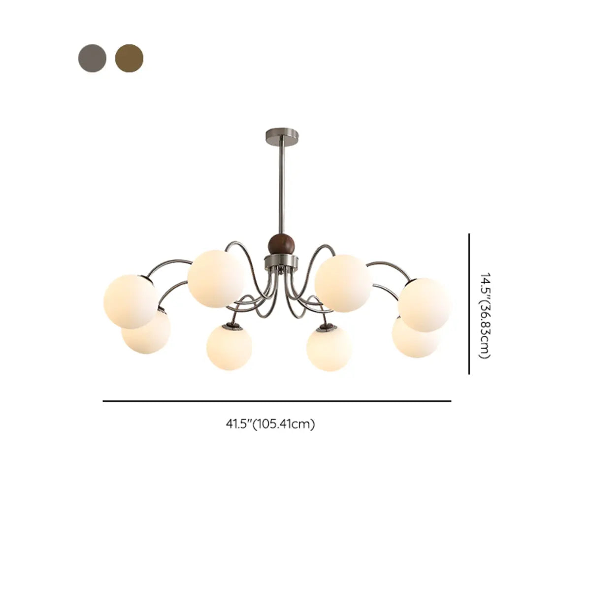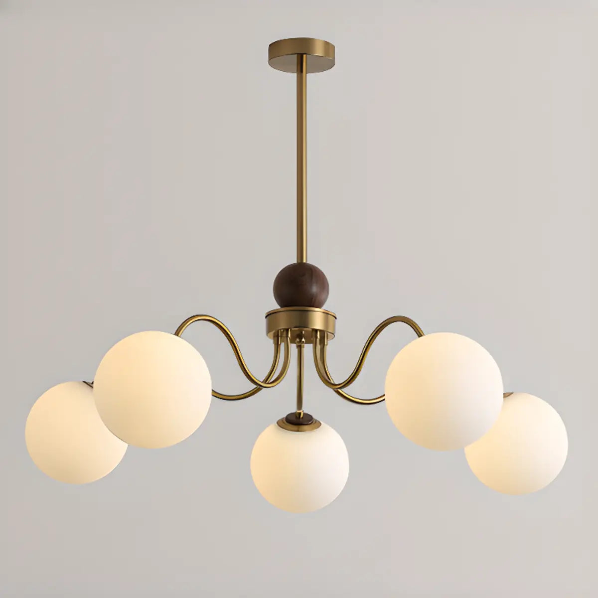 ZOWALA - Classic Nickel Wavy Arm Walnut Glass Ball Chandelier