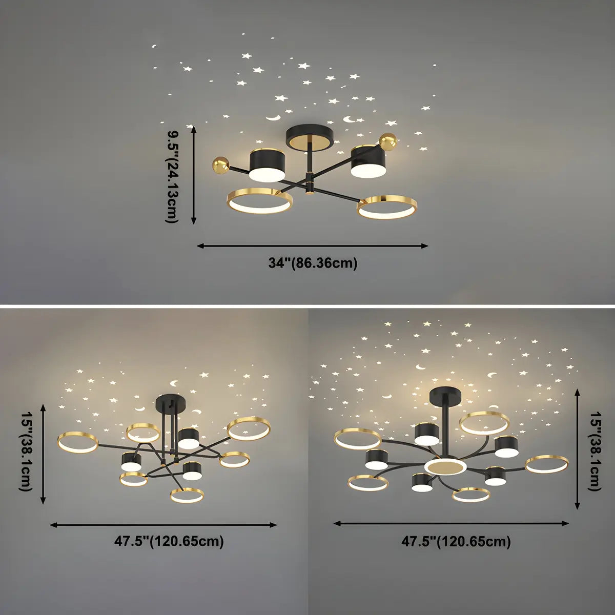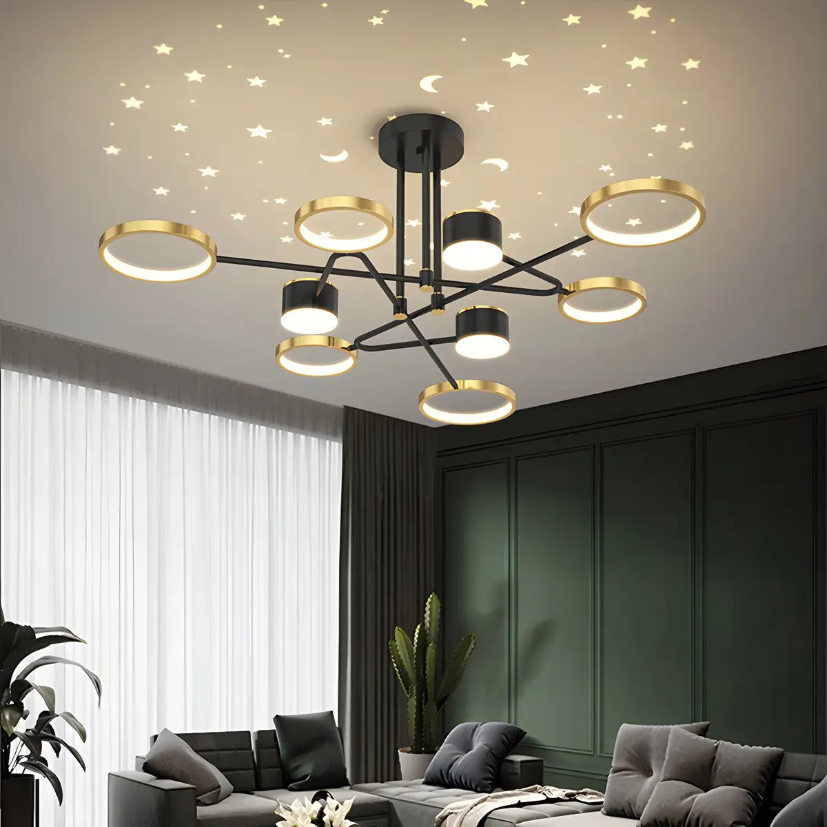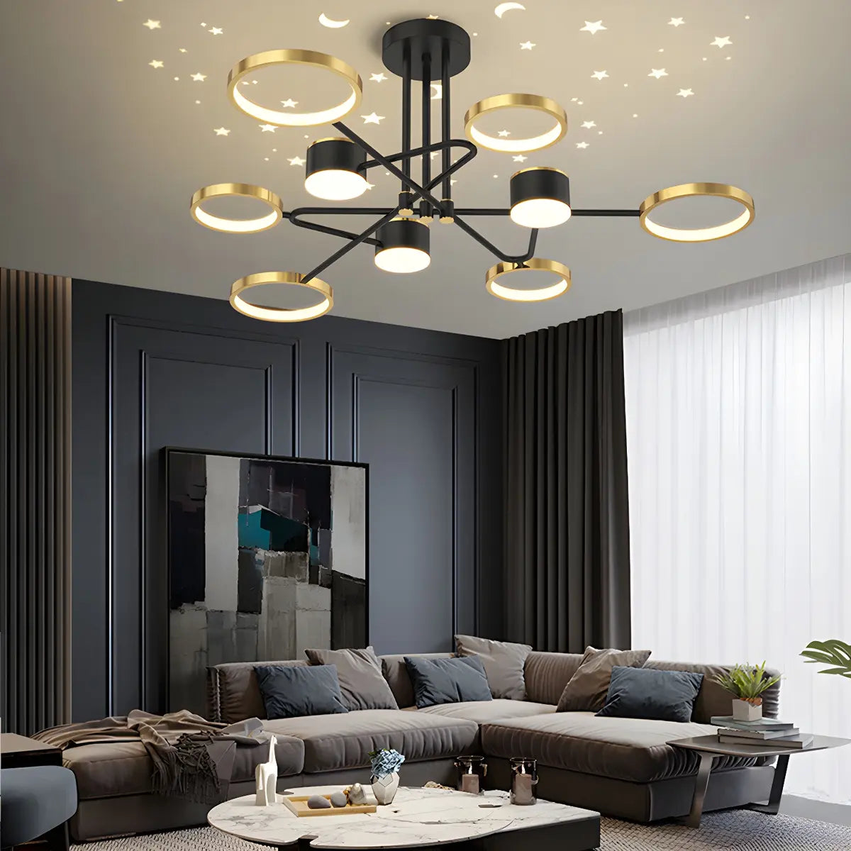 ZOWALA - Modern Starry Large Gold Black Circle Chandelier