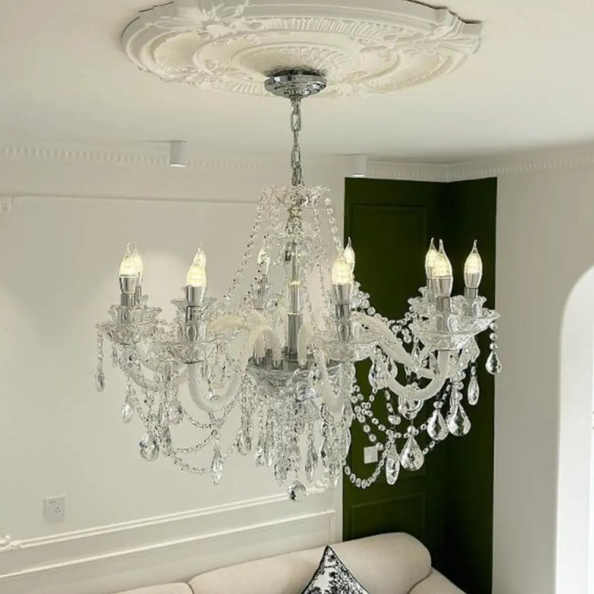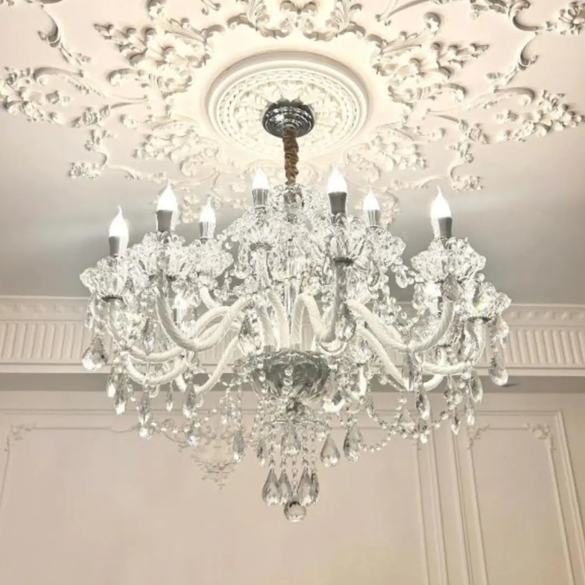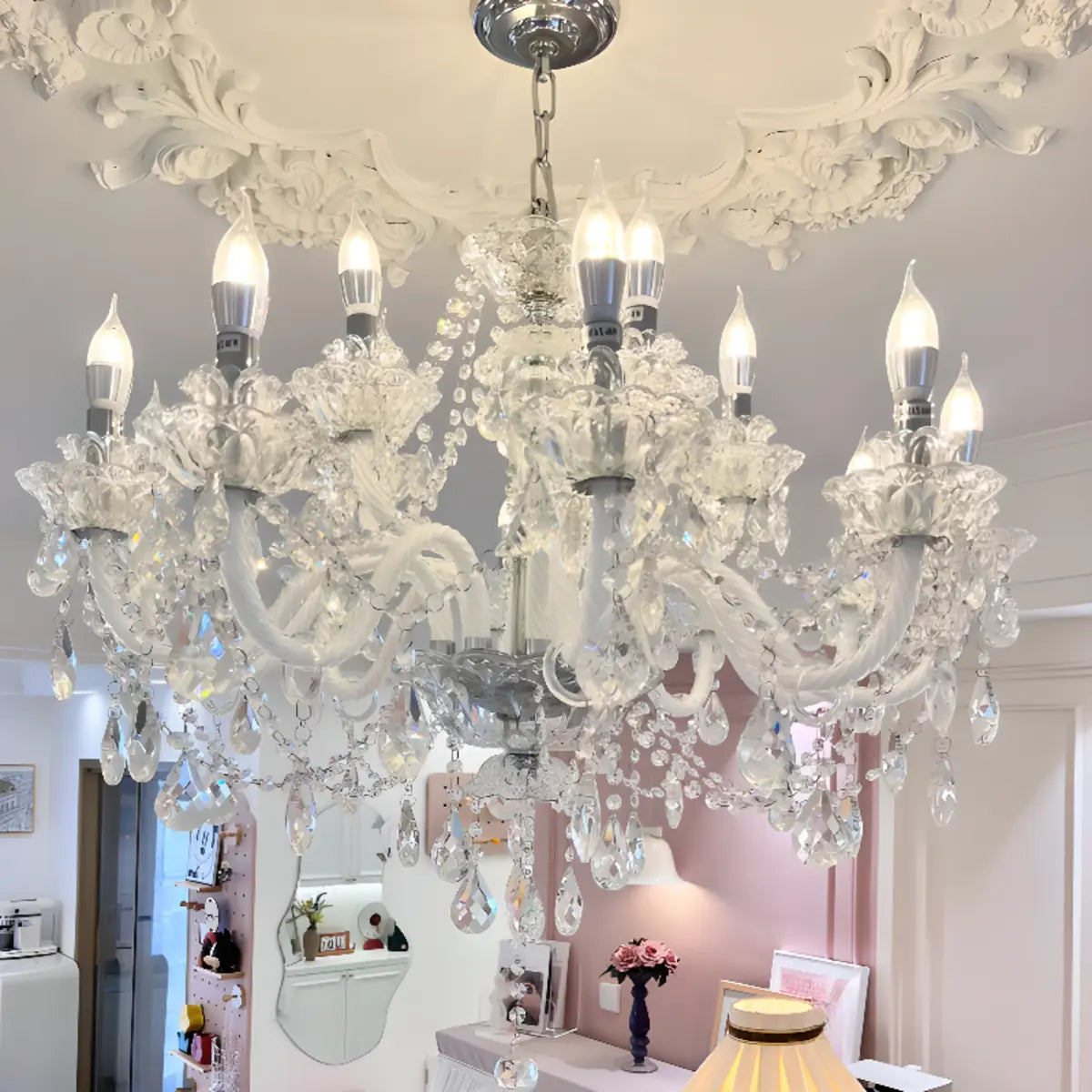 ZOWALA - Elegant Clear Crystal White Metal Candelabra Chandelier