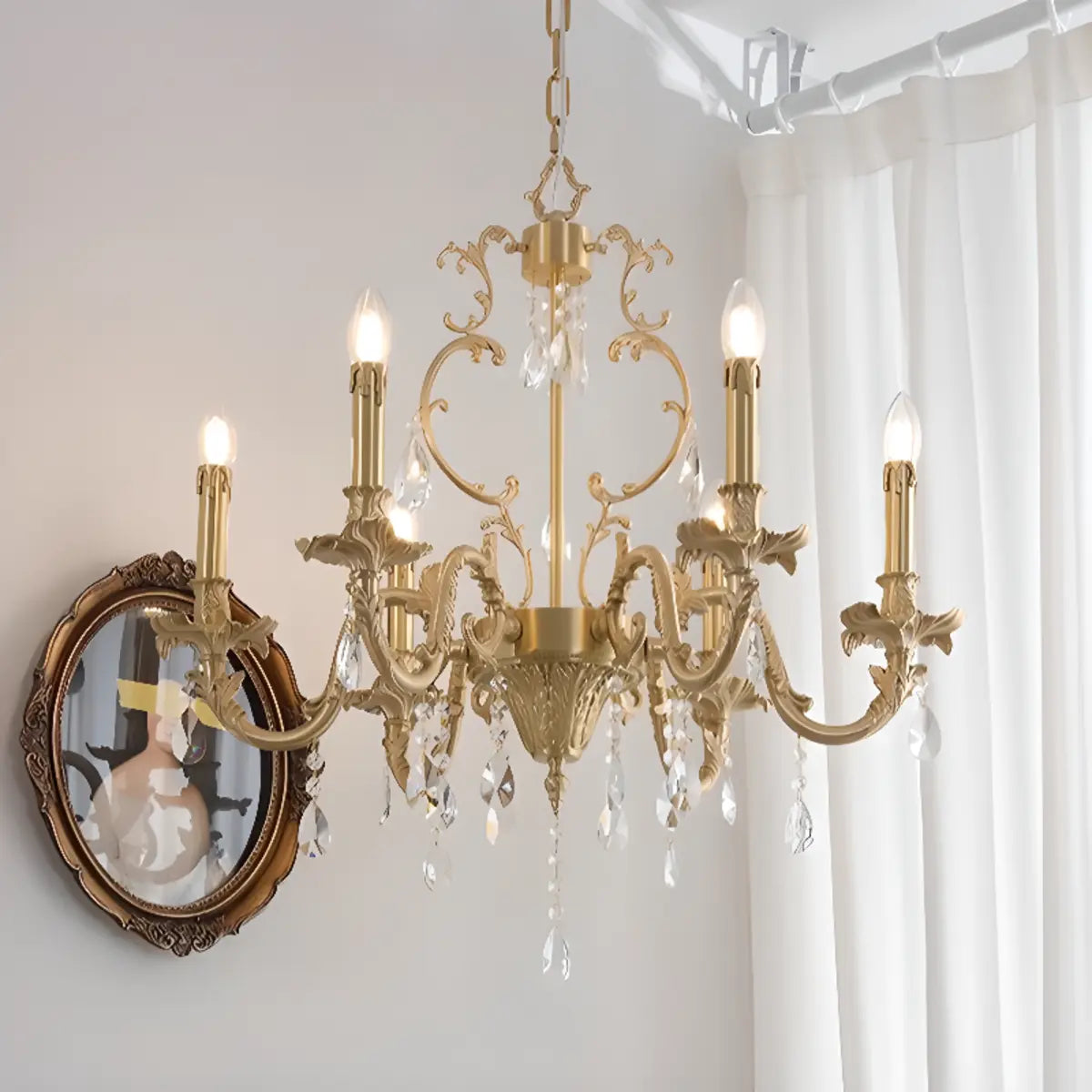 ZOWALA - Classic Gold Crystal Curve Candle Chandelier