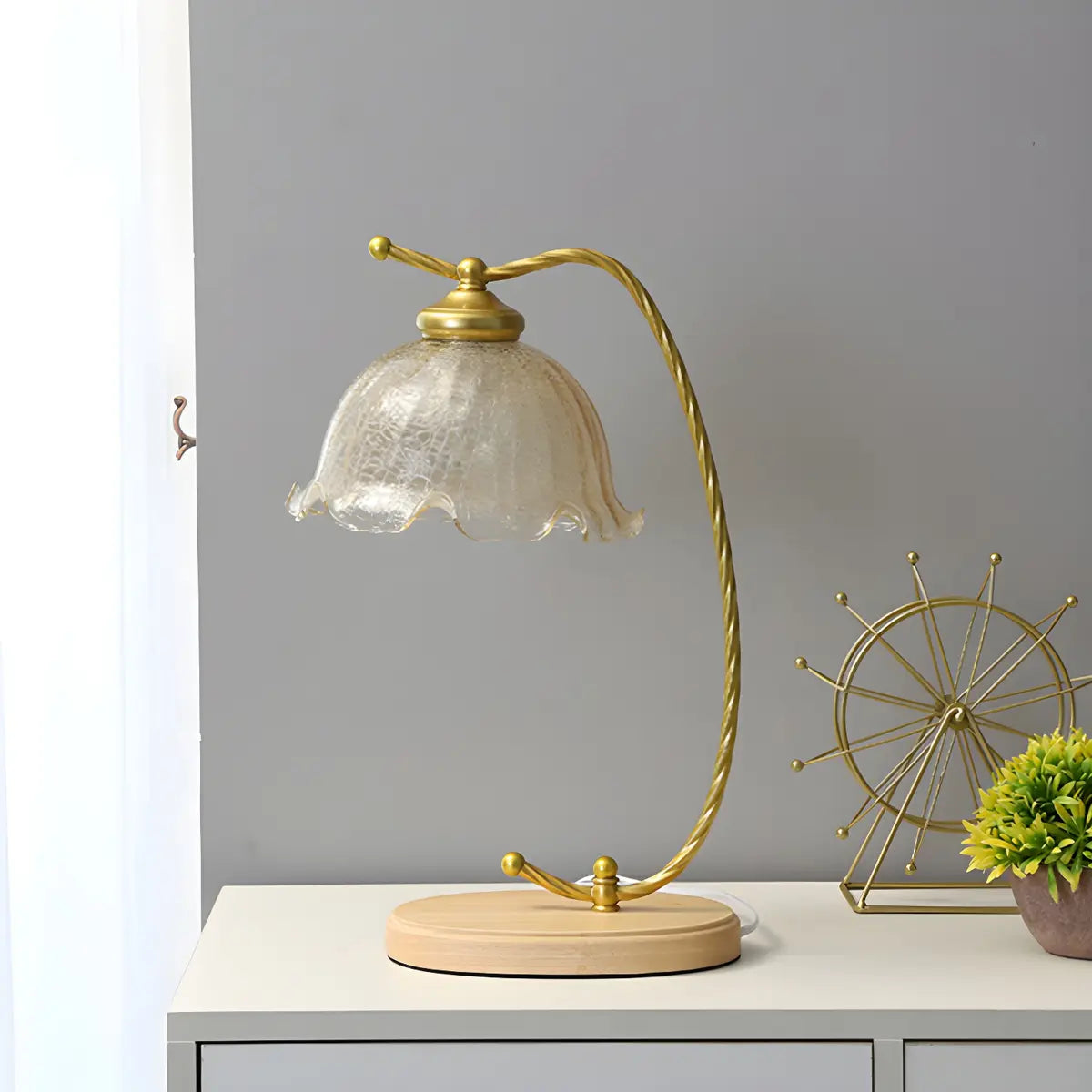 ZOWALA - Curved Gold Amber Flower Crackle Glass Table Light