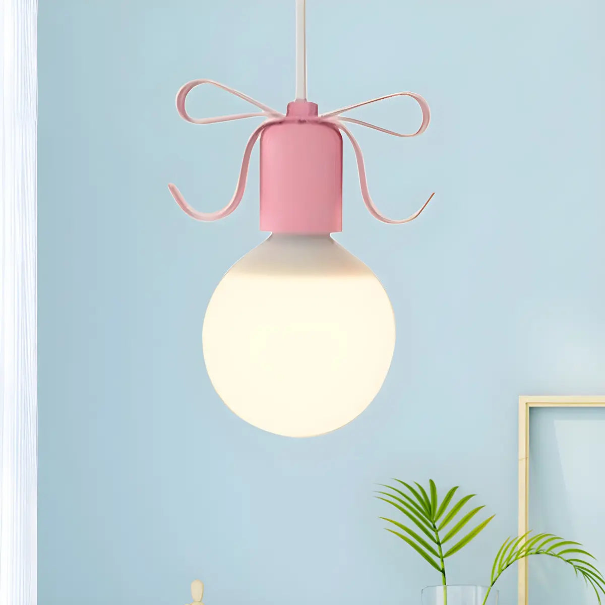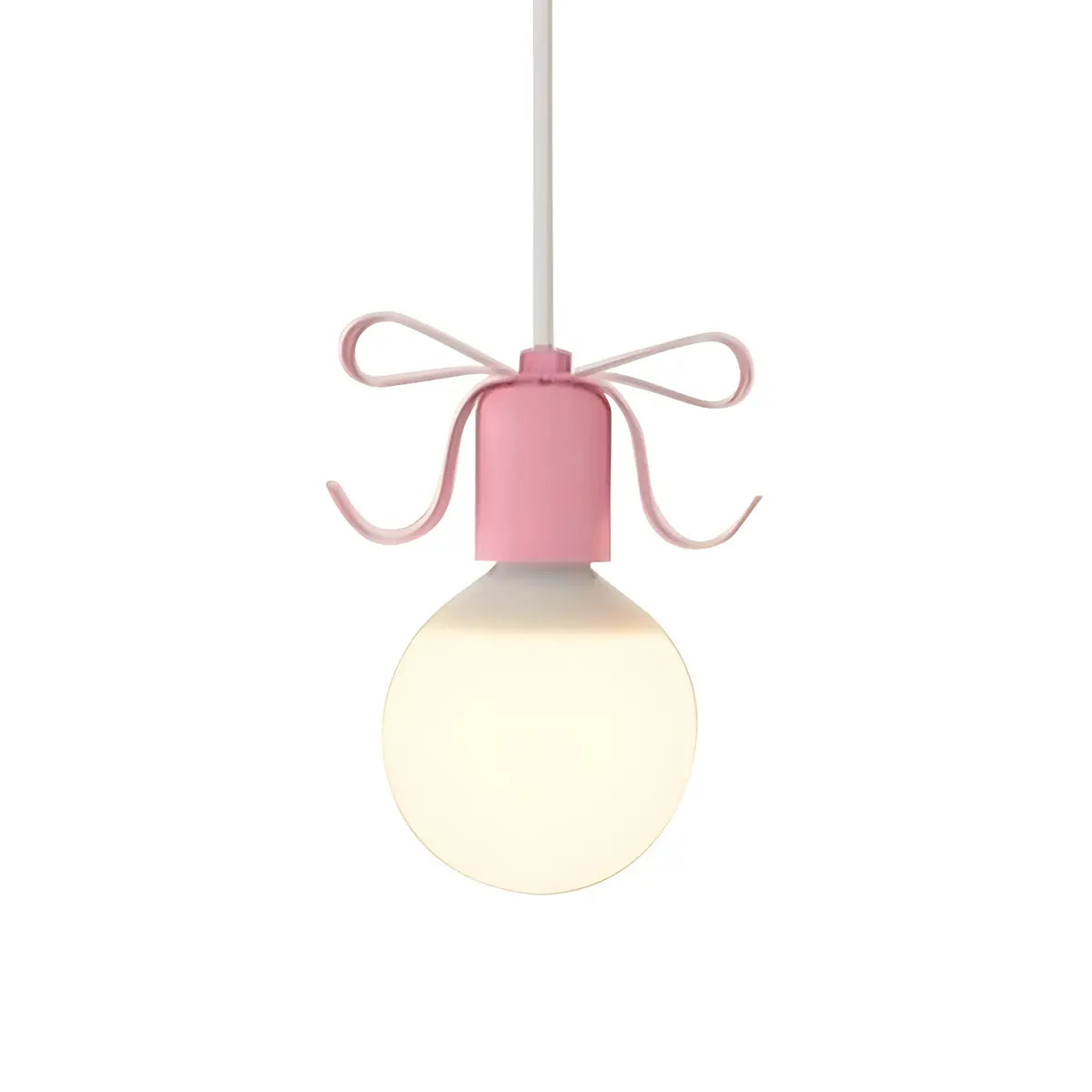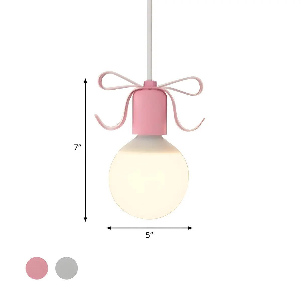 This pendant lamp features a soft pink bow design contrasting with white glass balls, creating a modern yet playful look. More than just a lighting fixture, it is a work of art that can add a warm and dreamy touch to a child's room.