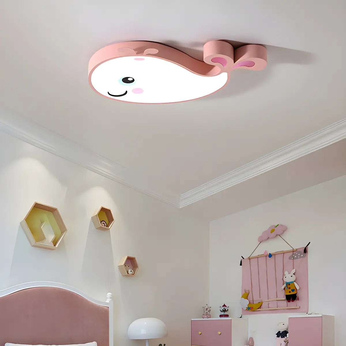 This cute whale-shaped ceiling lamp adds a childlike and warm atmosphere to the room with its lively design. The colorful whale shape not only attracts children's attention, but also becomes an important decoration to embellish the room. Its simple design perfectly combines modernity with natural elements, highlighting the artistic atmosphere of the space.