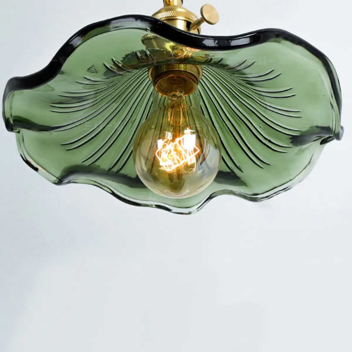 ZOWALA - Dark Green Ruffled Glass Flower Wall Sconce