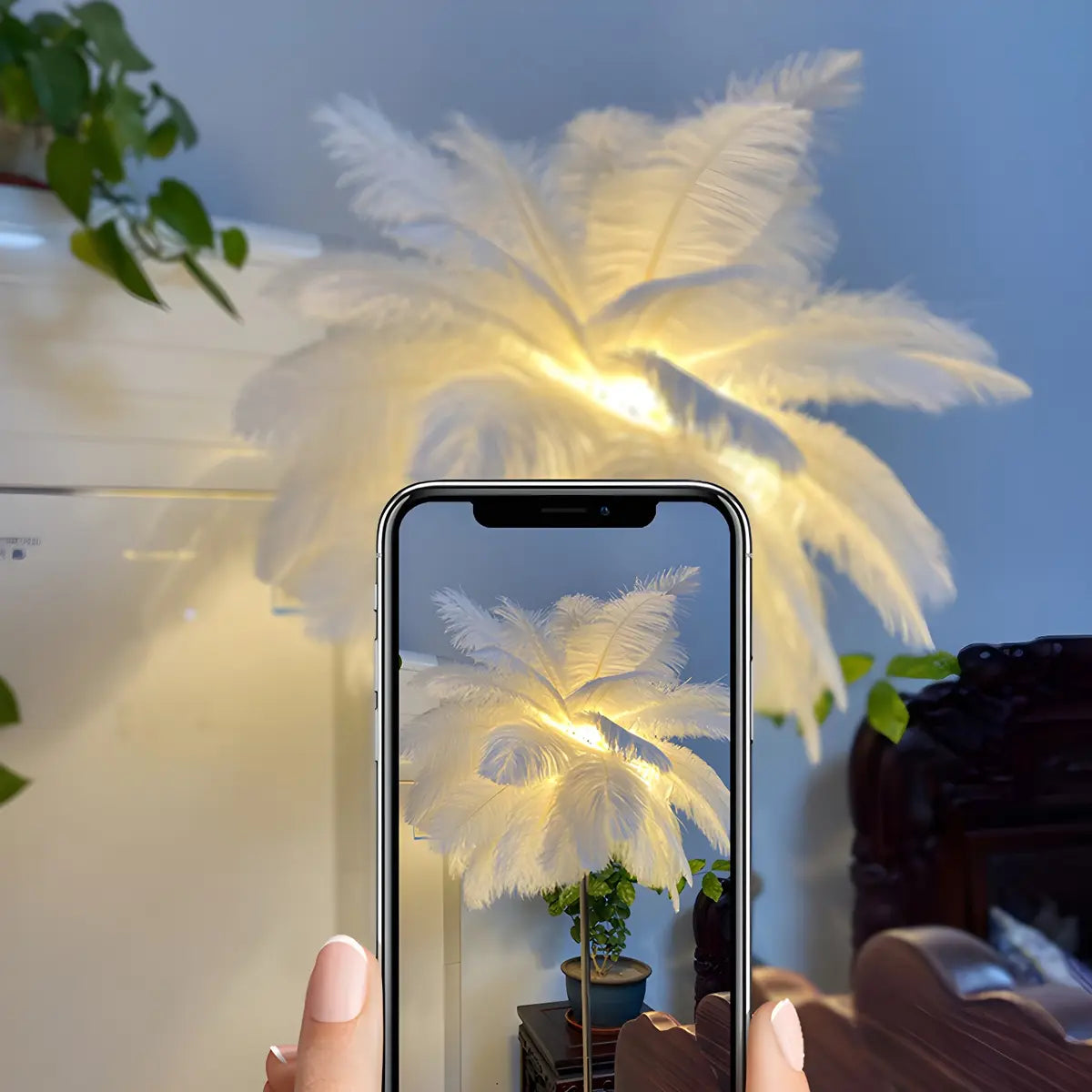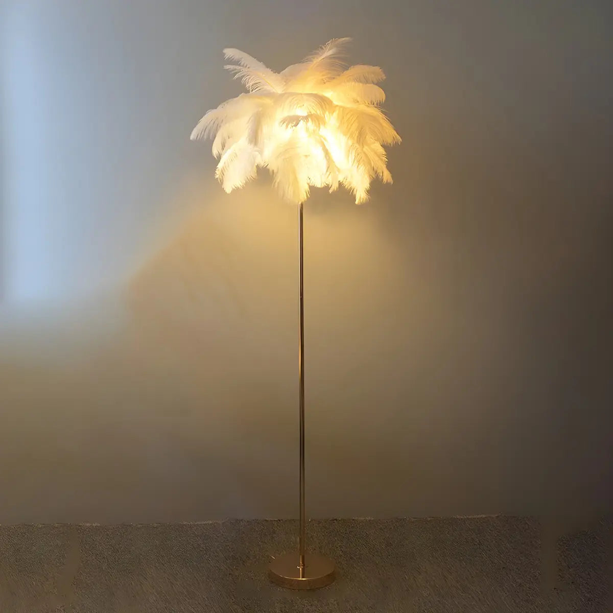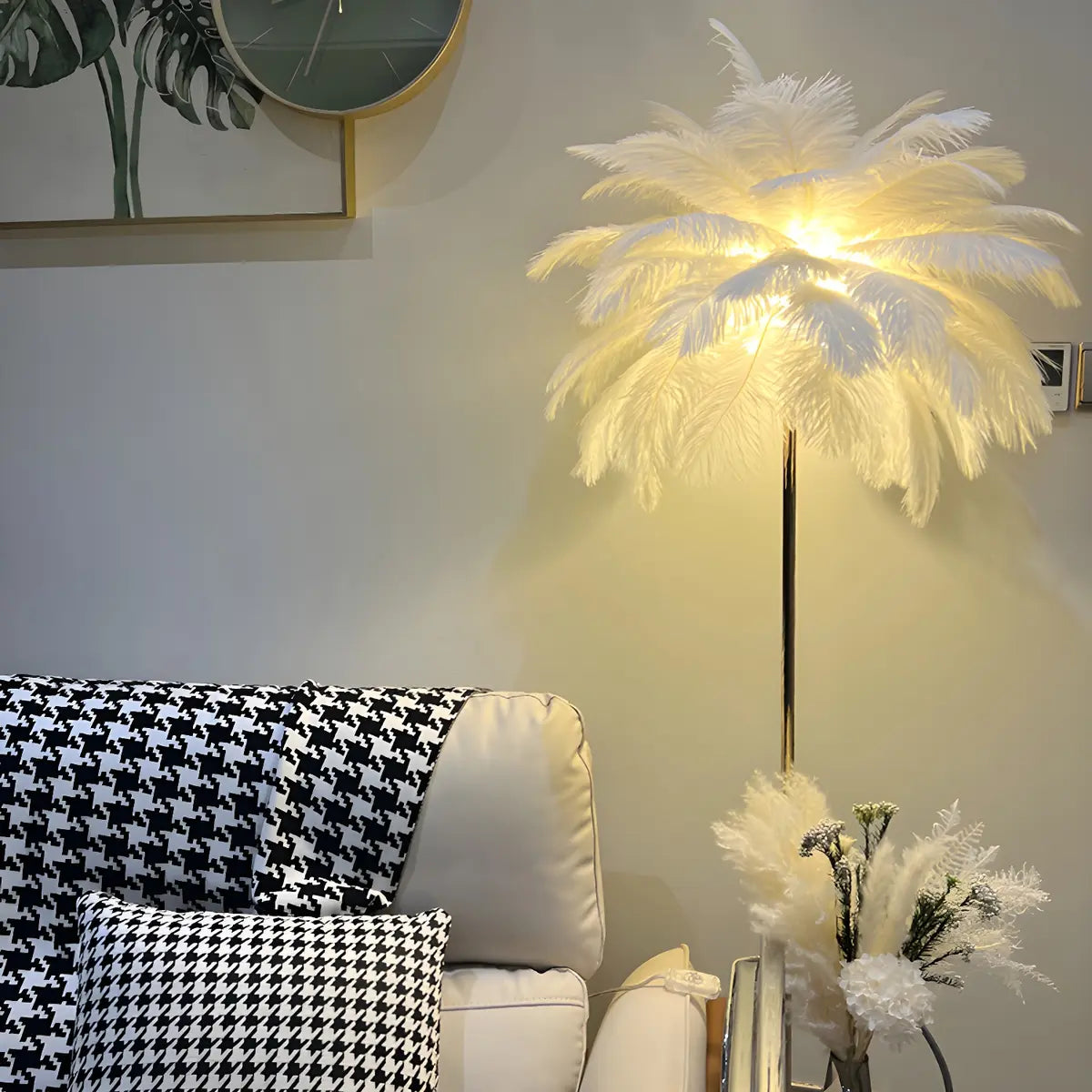 This modern feather floor lamp becomes the highlight of the interior space with its unique decorative design, creating a warm and elegant atmosphere.