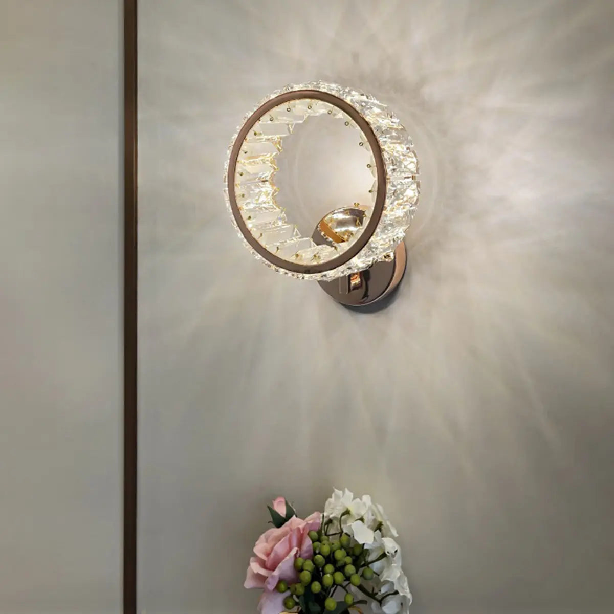 This wall lamp adds a touch of luxury to your home with its modern style, metal, and crystal. It fits perfectly into any decor, whether it's in the living room or bedroom.