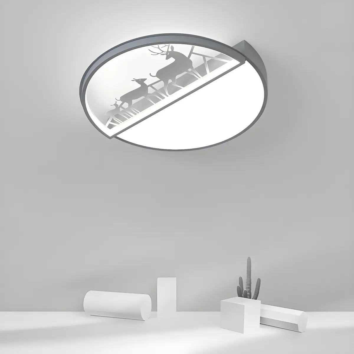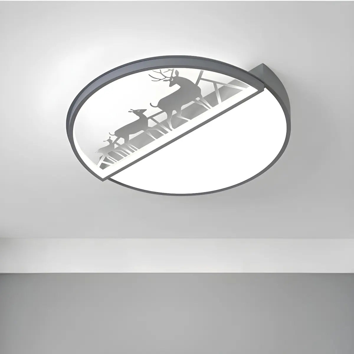 ZOWALA - Deer Silhouette Black Circle LED Flush Mount Light