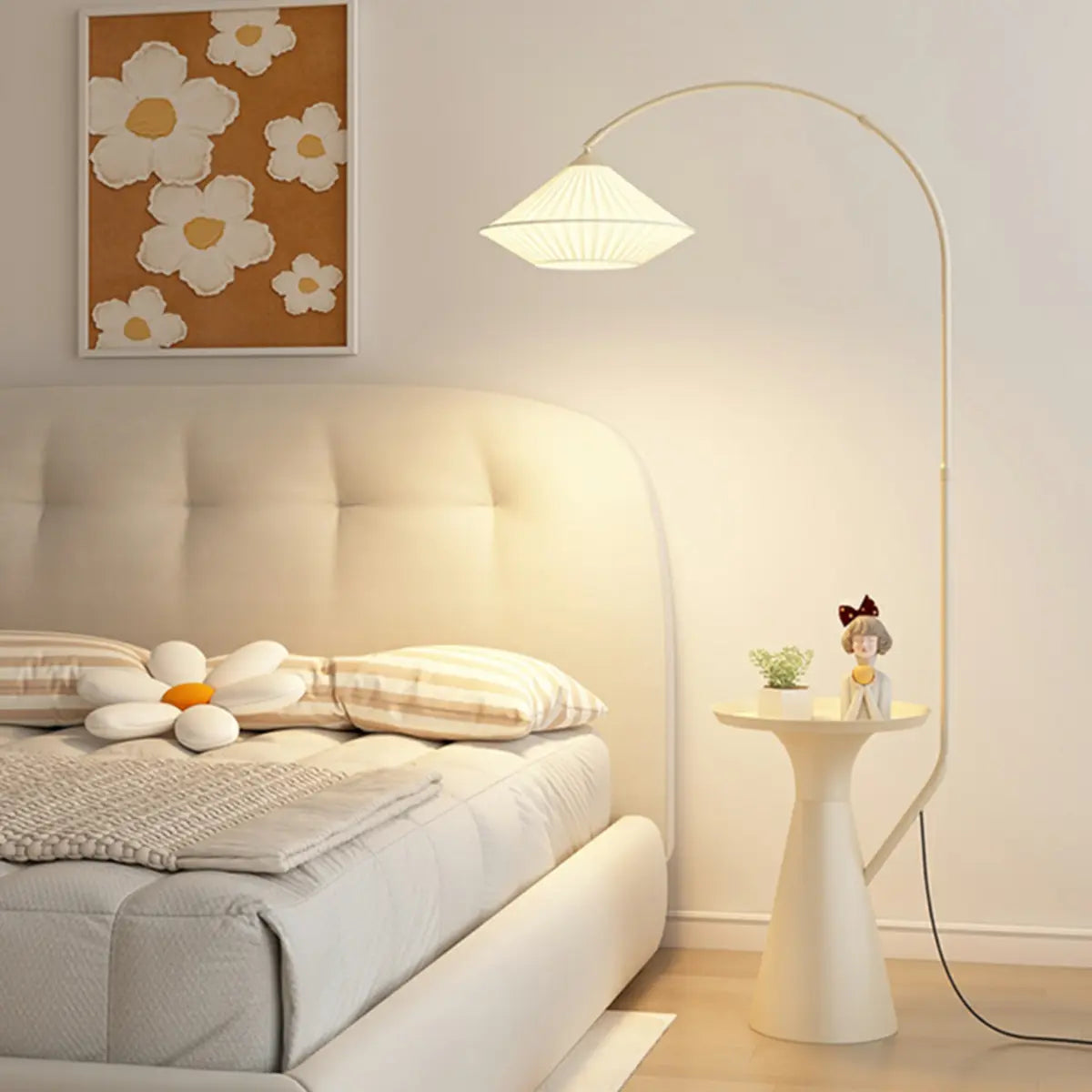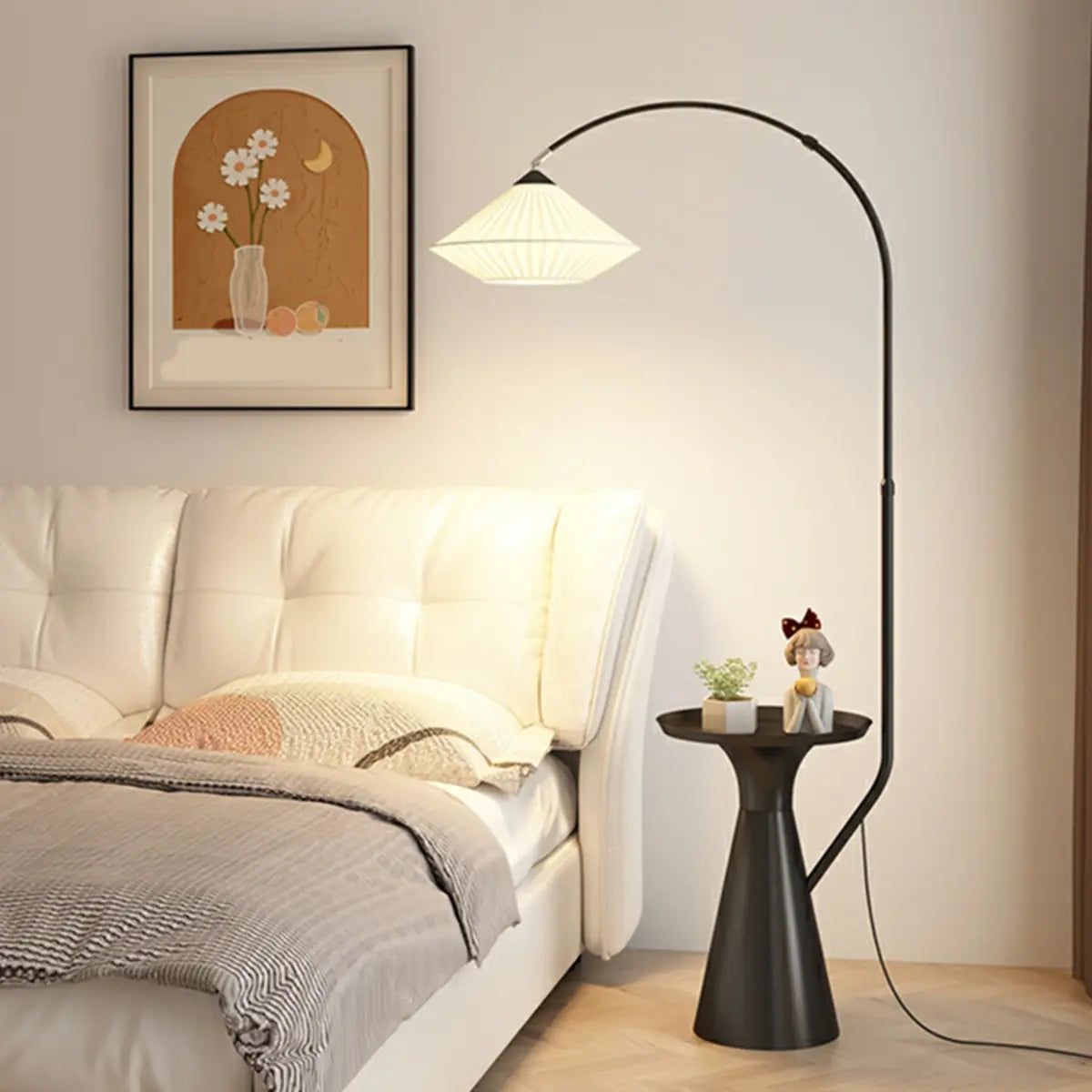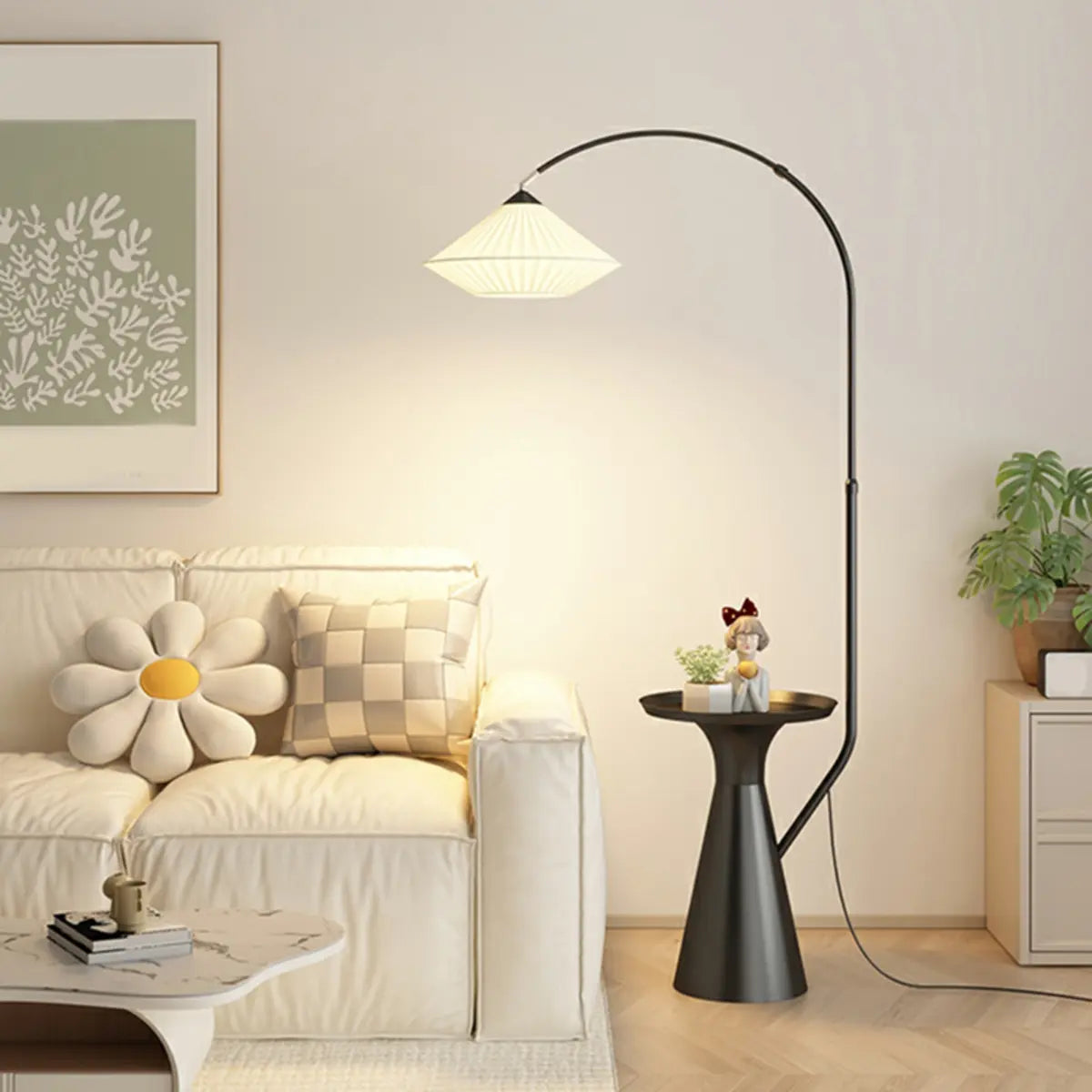 ZOWALA - Diamond-Shaped Fabric Arched Floor Lamp with Table