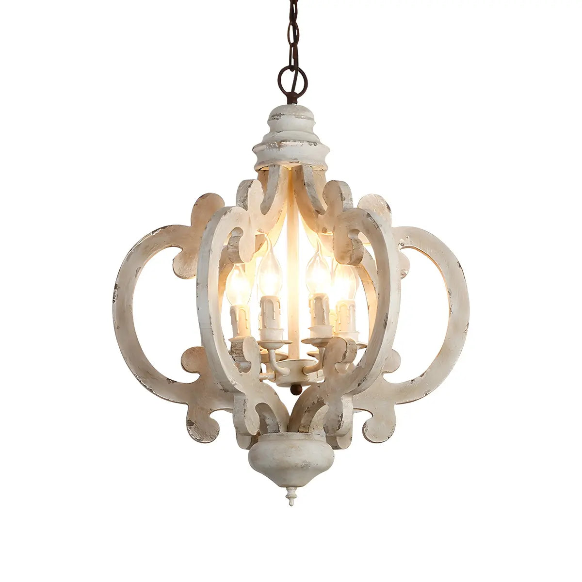 This ZOWALA country-style chandelier will bring a natural and warm atmosphere to your home space. Its rustic wooden design, paired with a retro candle-shaped lamp, perfectly blends into any home decoration style.