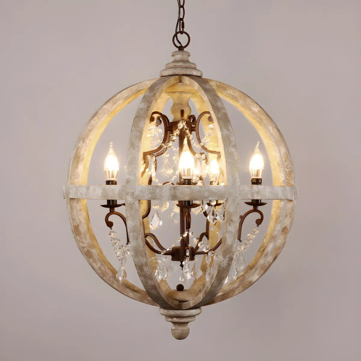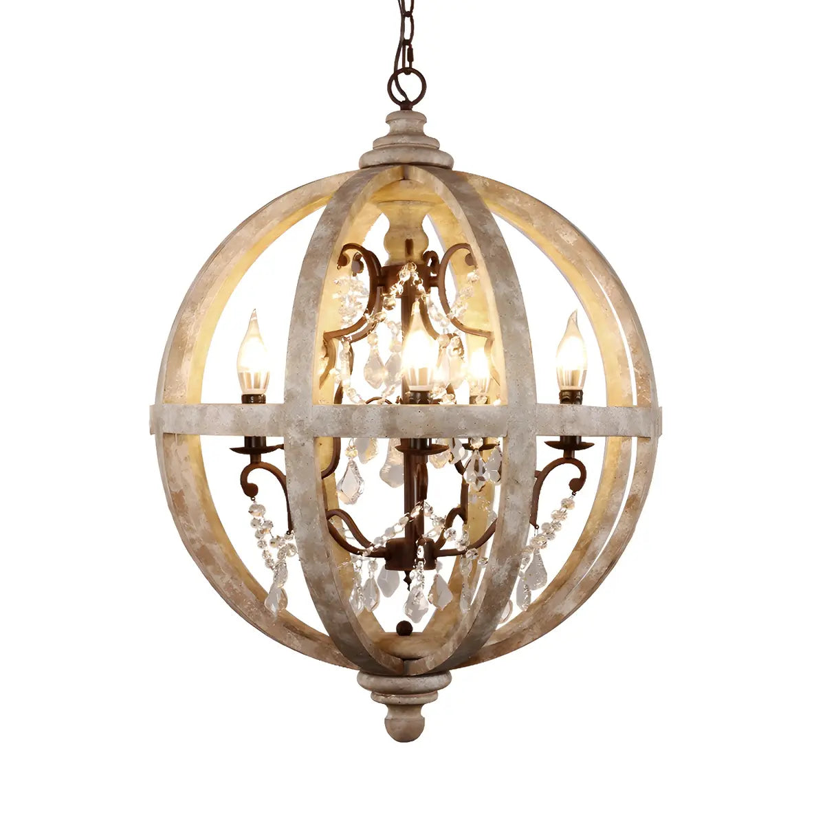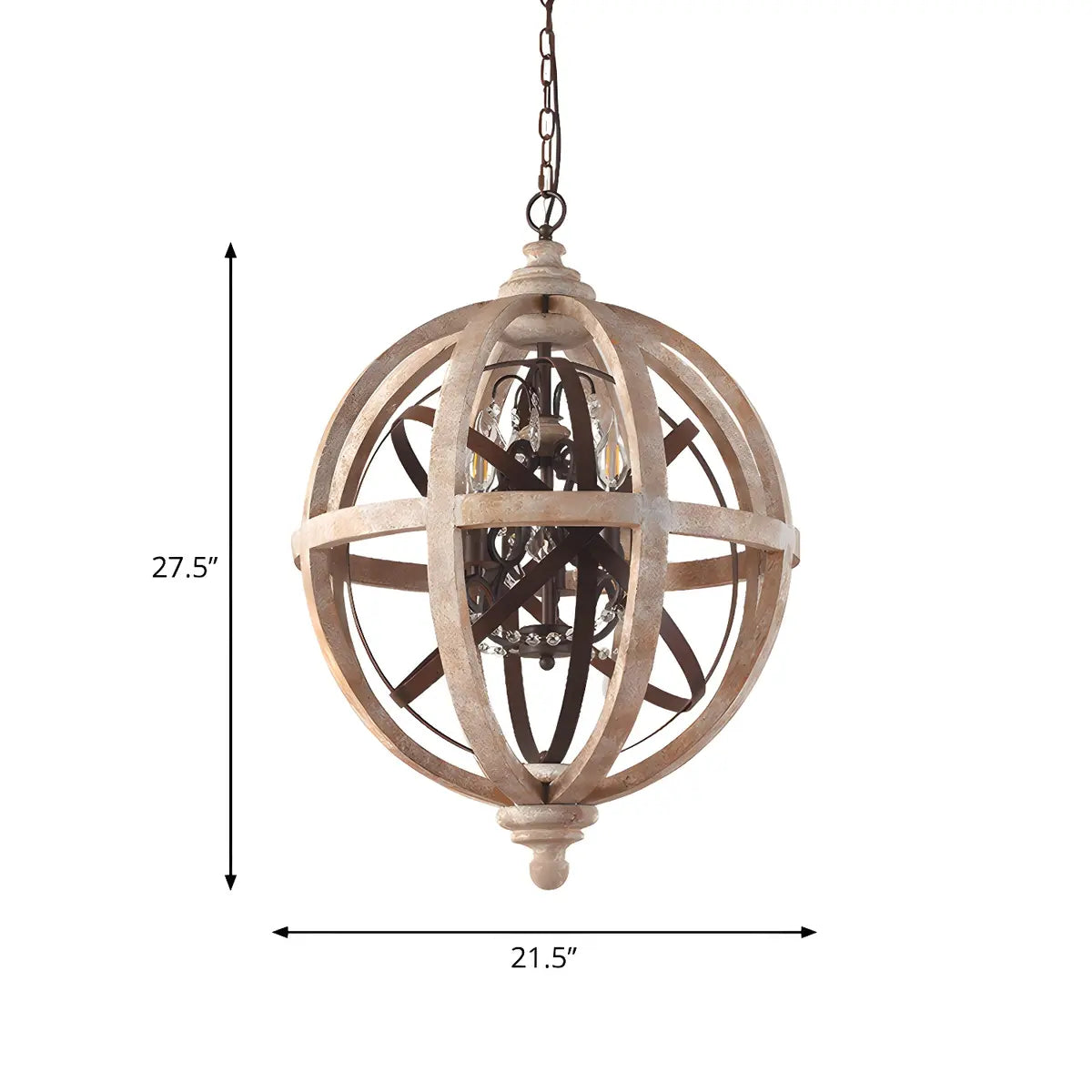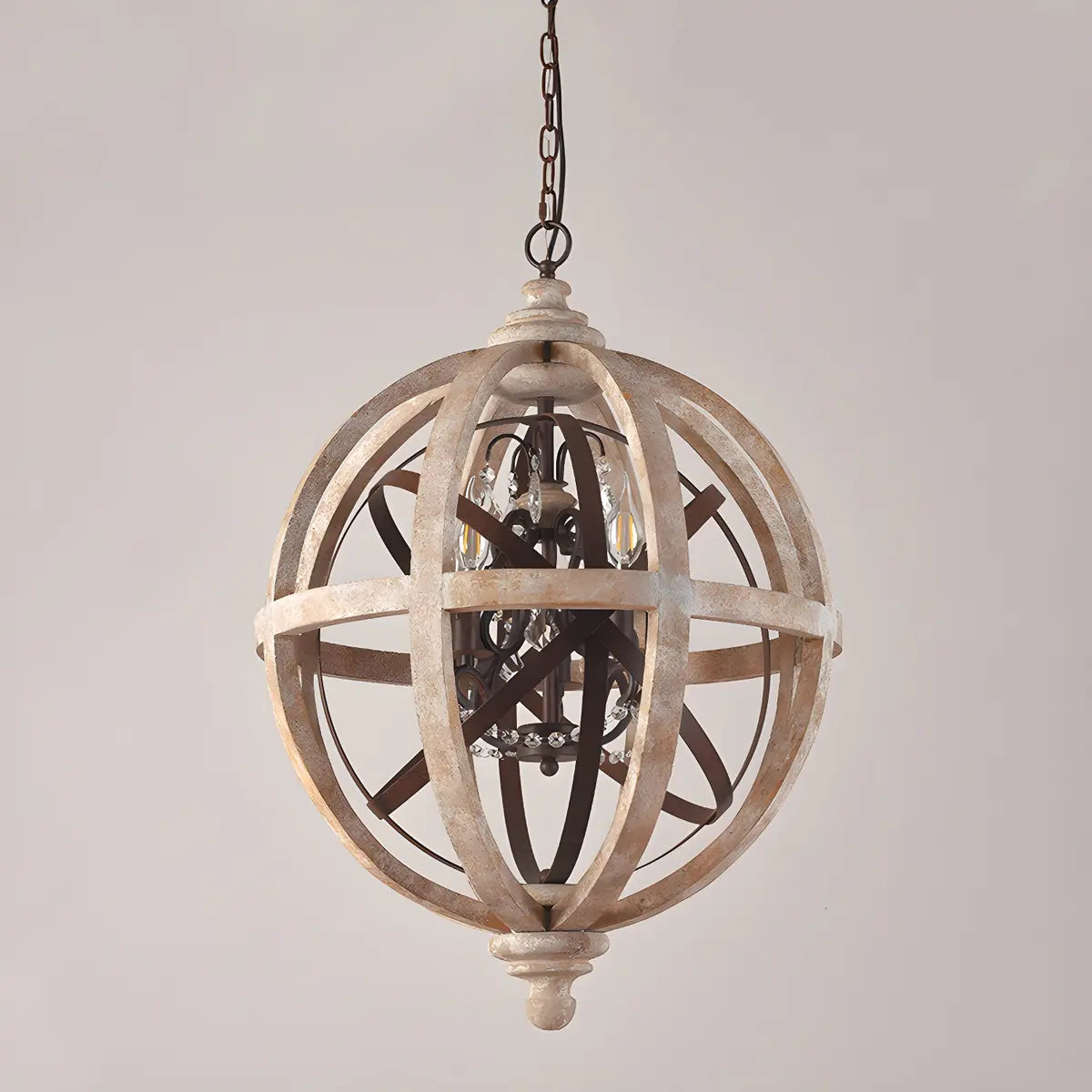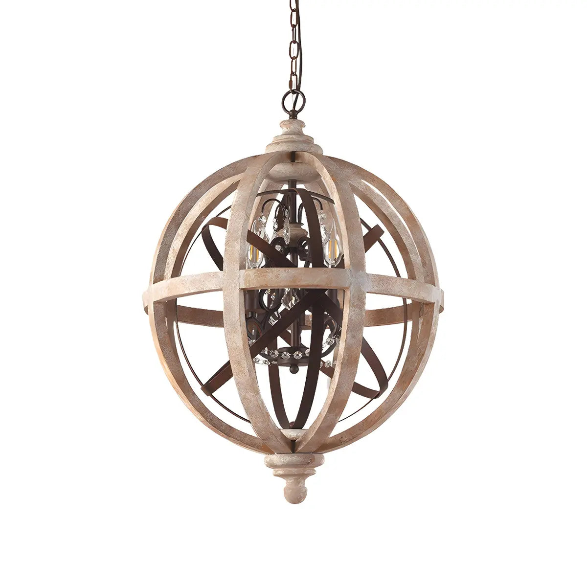 ZOWALA - Distressed Wood Rustic Orb Chandelier