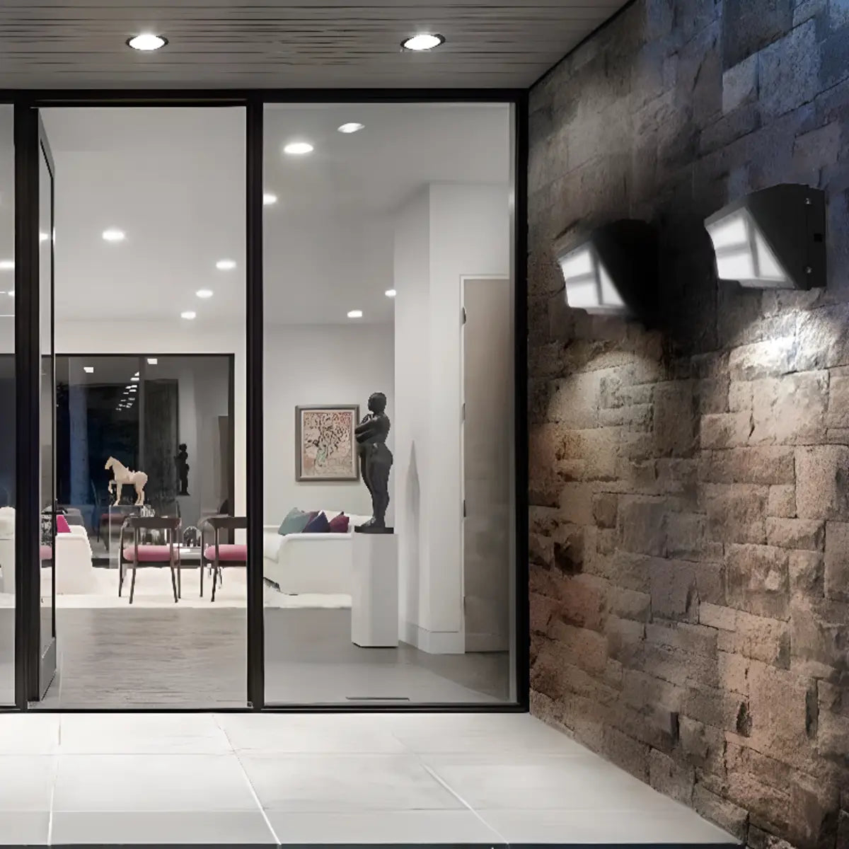 Combining a modern geometric design with durable metal, this wall light is perfect for a variety of outdoor settings.