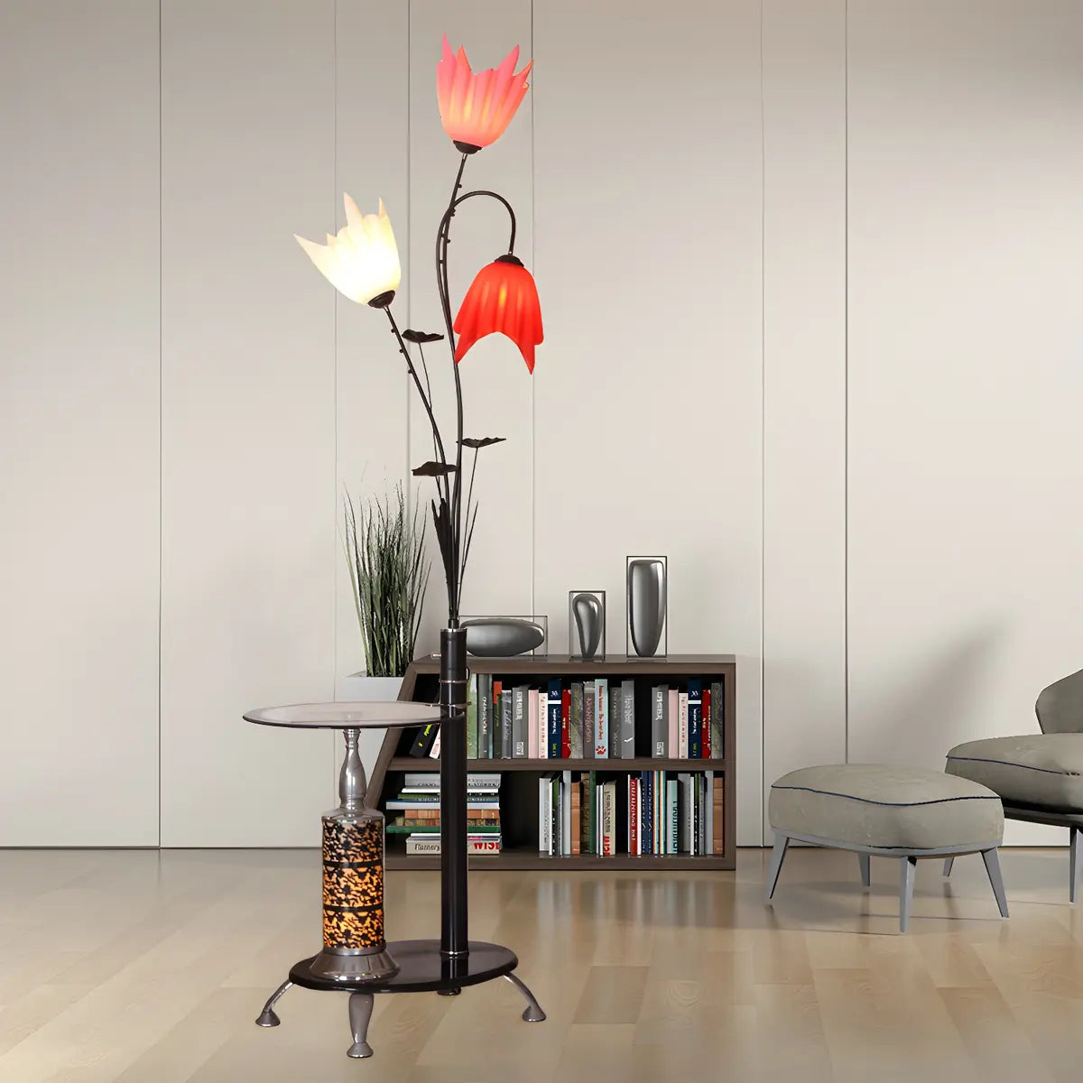 ZOWALA - Elegant 3-Light Black Floral Floor Lamp