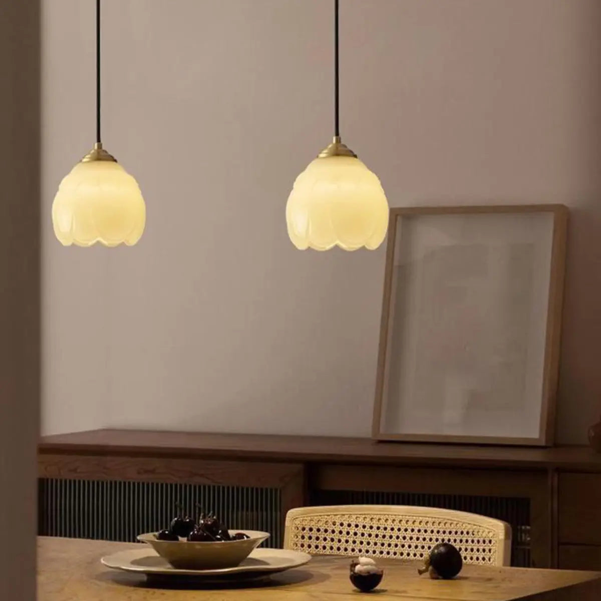 ZOWALA - Elegant Beige Resin Bell Flower Pendant Light