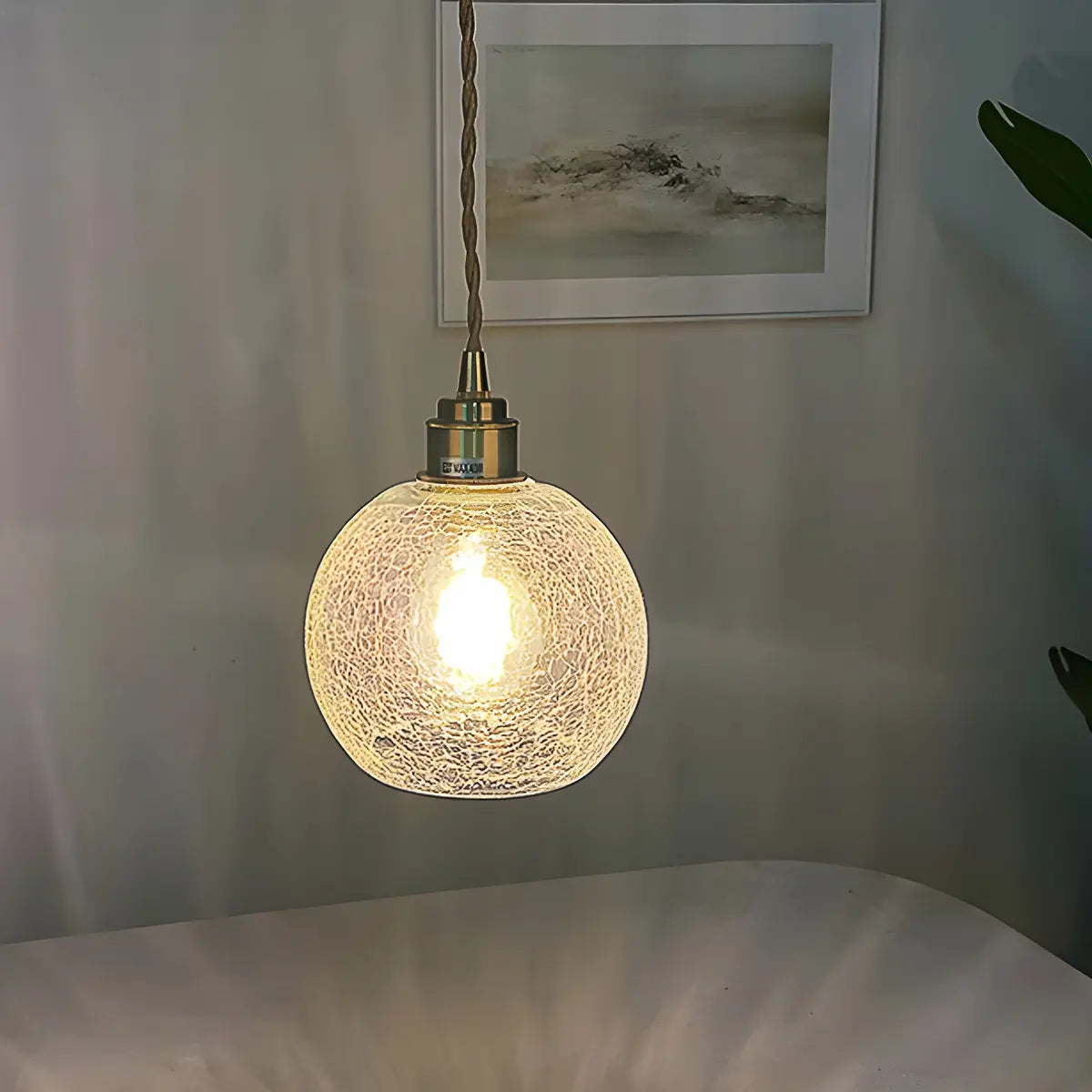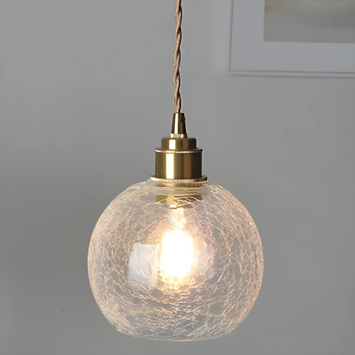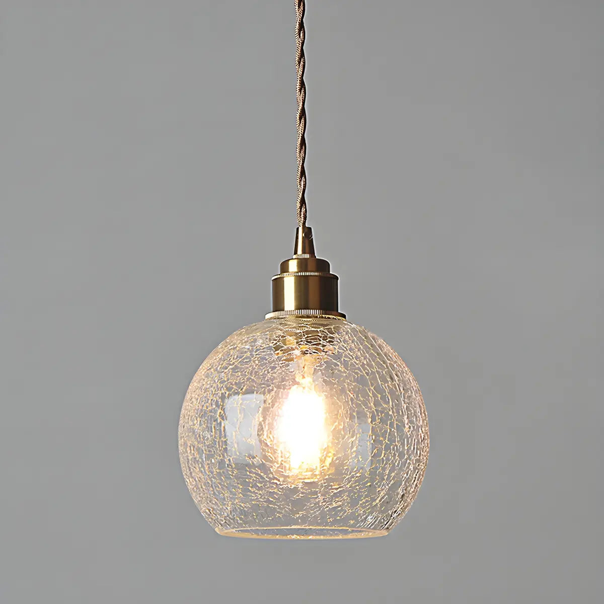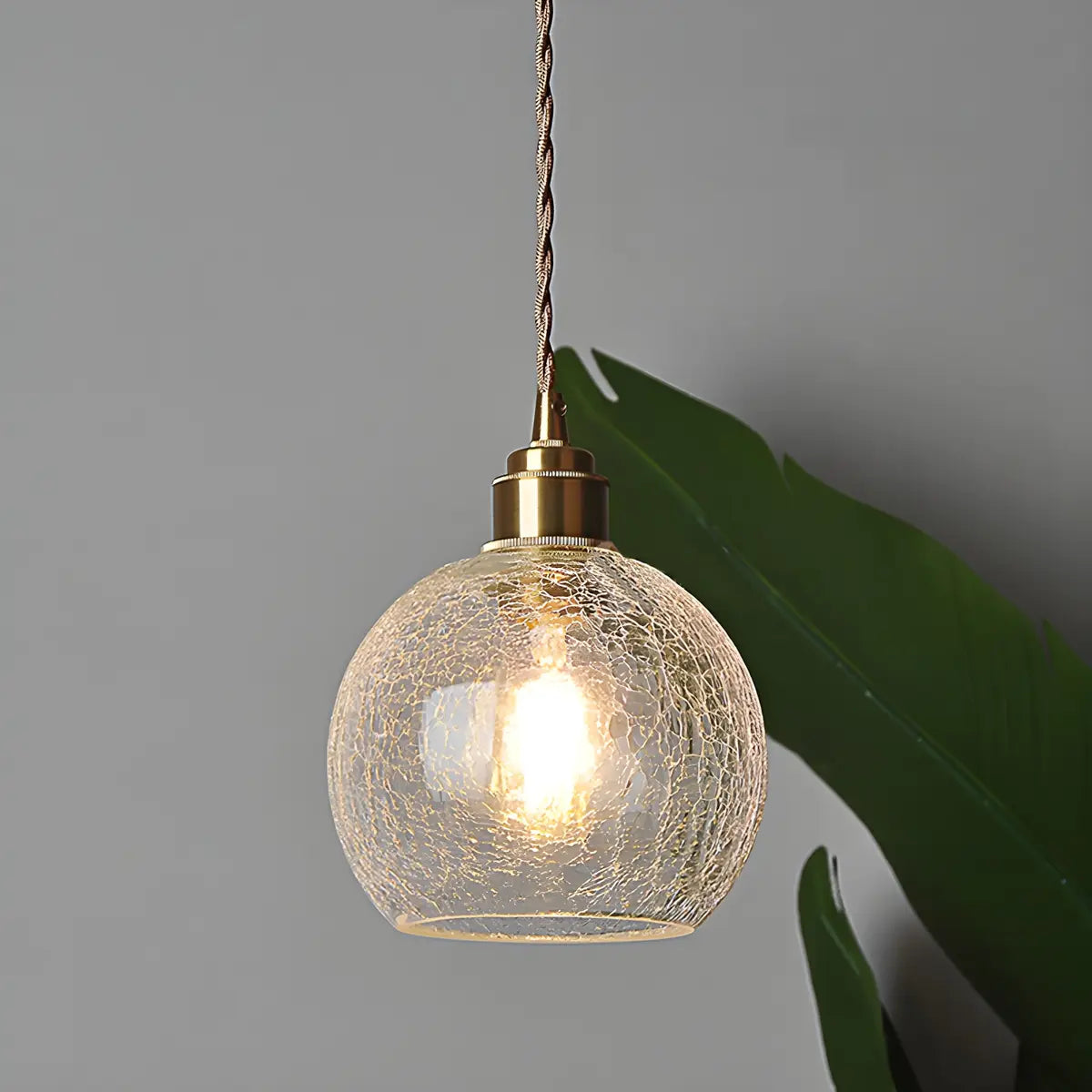 ZOWALA - Elegant Brass Globe Crackle Clear Glass Pendant Light