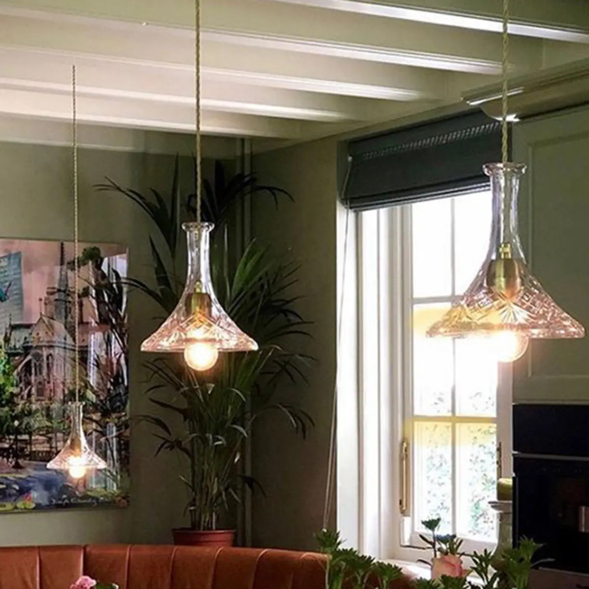 This pendant light is made of transparent glass, and the conical lampshade design shows the simple beauty of modern style. Its crystal clear glass reflects soft light, adding a warm and harmonious beauty to the kitchen, with great decorative effect, adding a modern artistic atmosphere to the room.