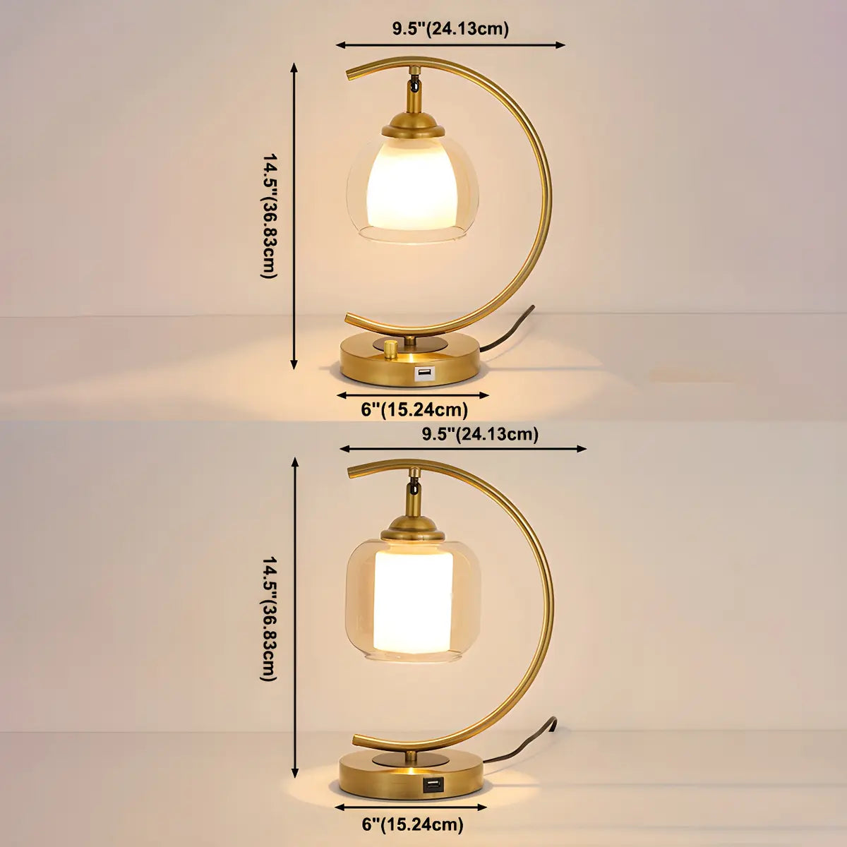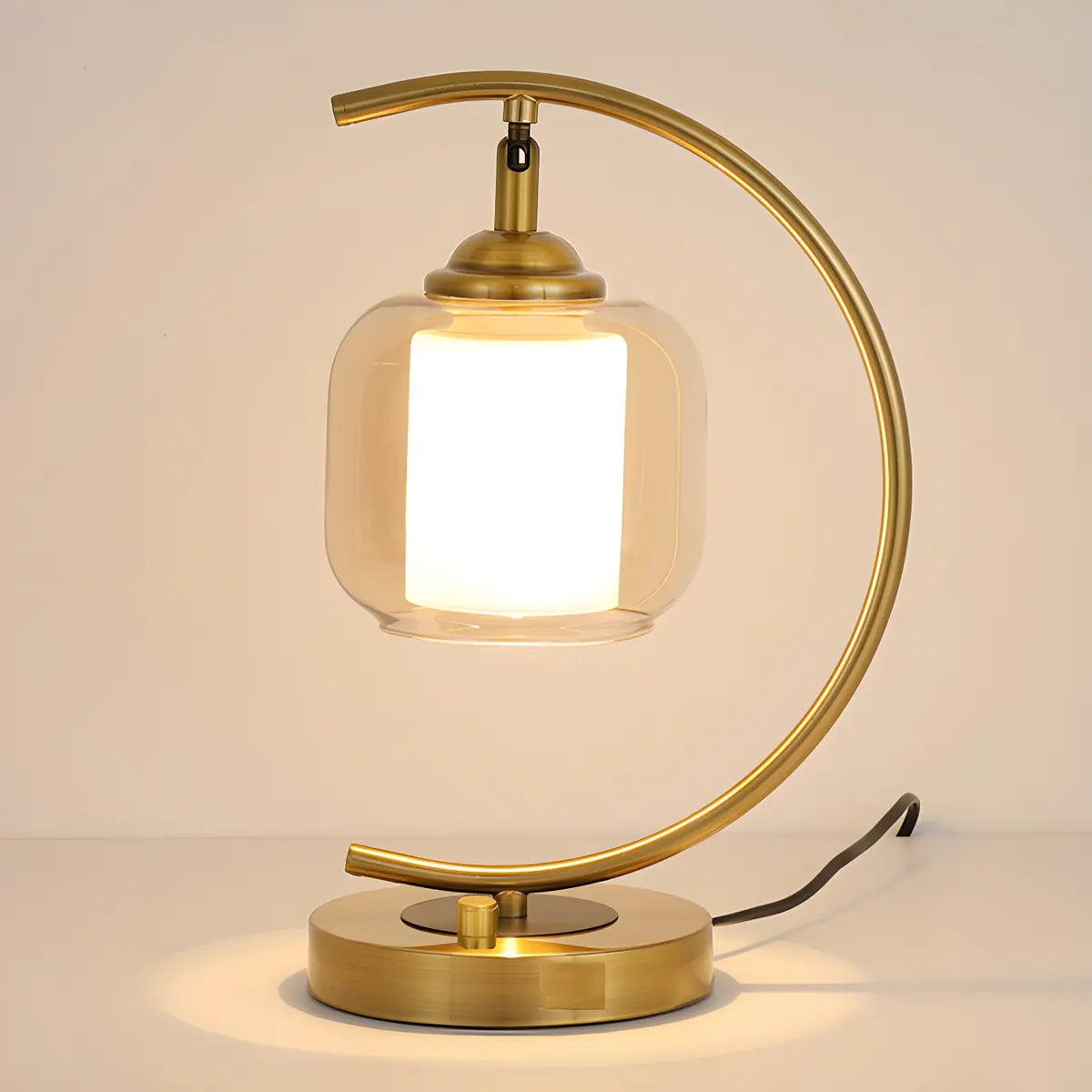 ZOWALA - Elegant Clear Jar Golden C-Shape Glass Table Lamp