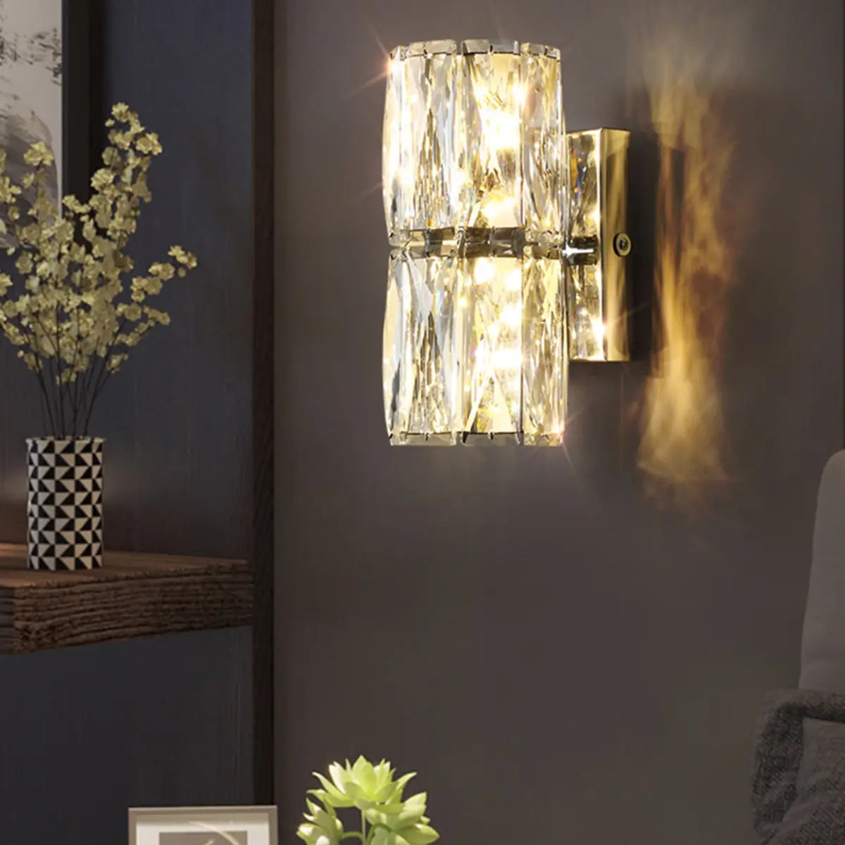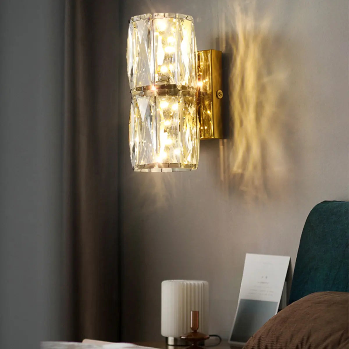 ZOWALA - Elegant Faceted Gold Crystal Pillar Wall Lamp
