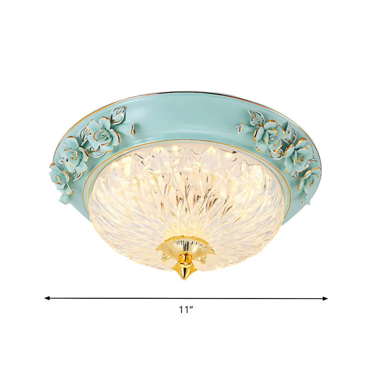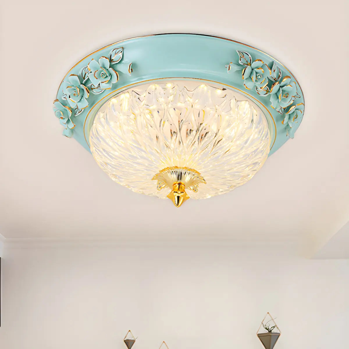 ZOWALA - Traditional Carved Blue Glass Floral Flush Mount Light