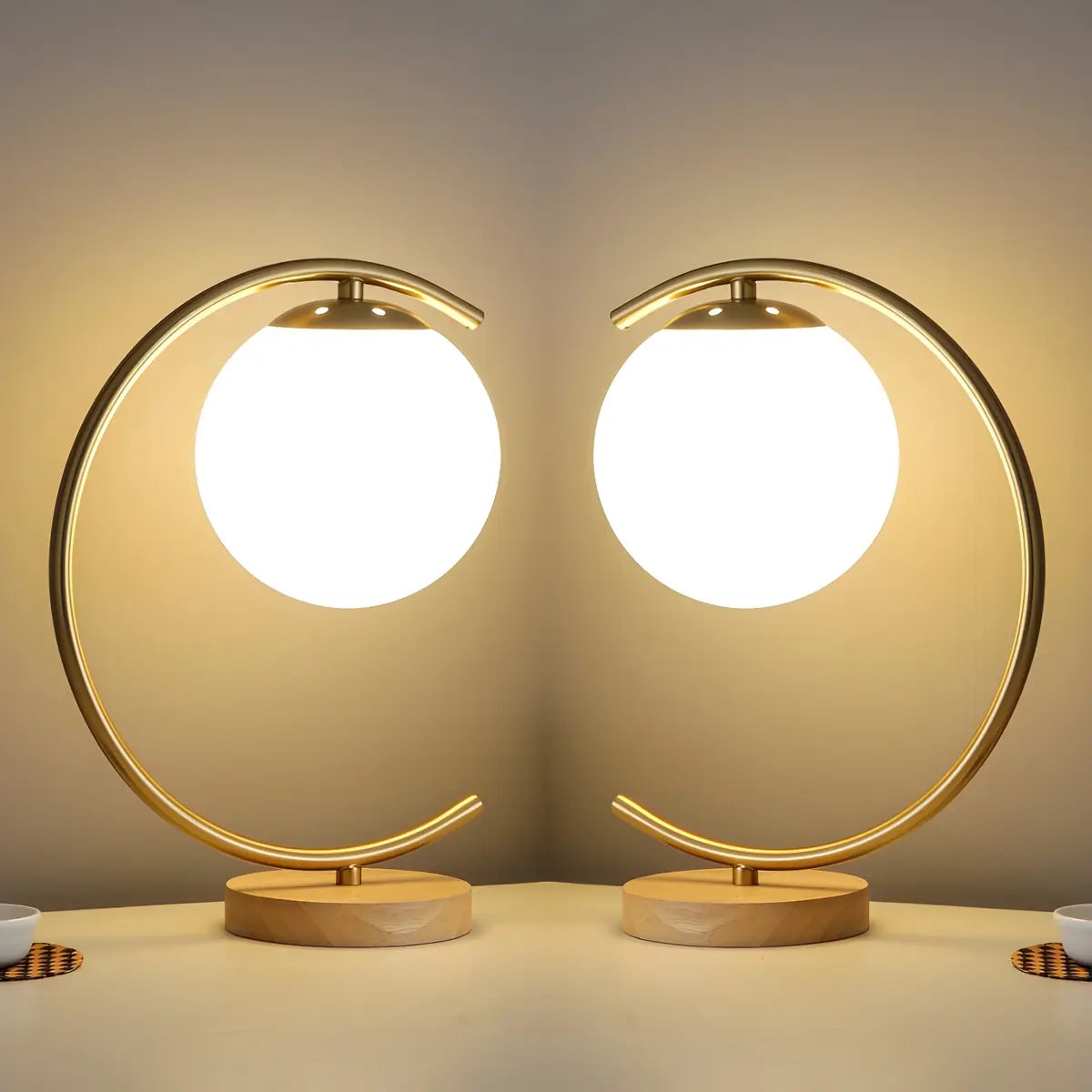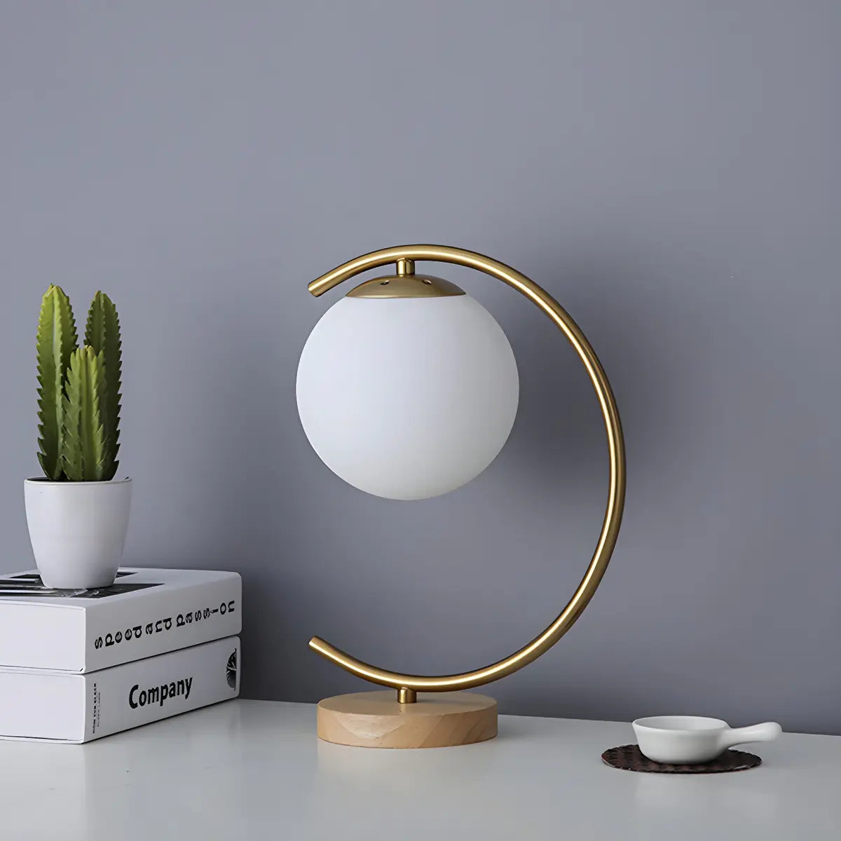 ZOWALA - Elegant Glass Globe Curved Gold Table Lamp