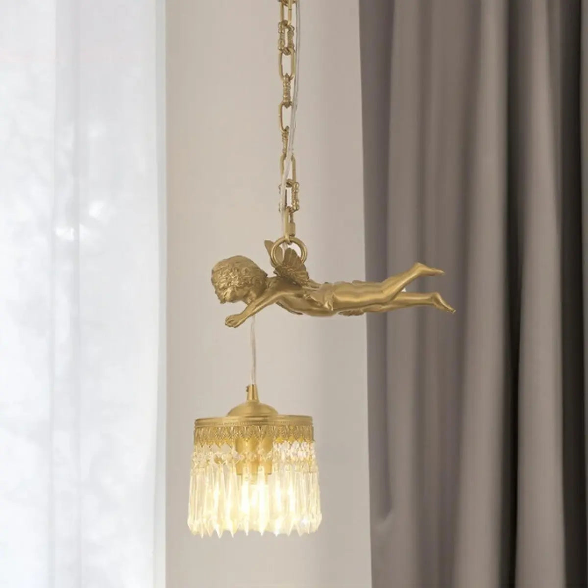 The appearance of this chandelier is like a work of art. The golden angel design and the crystal lampshade create a luxurious and romantic atmosphere. It is not only a lighting device, but also a decorative art that enhances the taste of your home, making your kitchen instantly elegant and stylish.