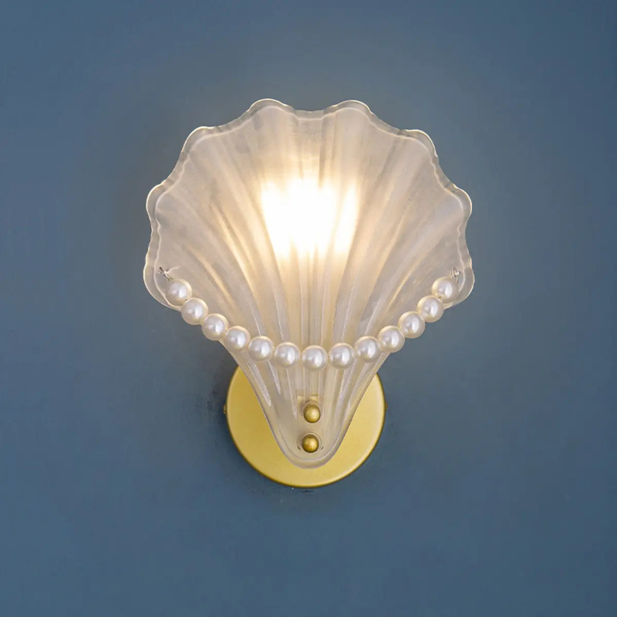 ZOWALA - Elegant Gold Frosted Glass Seashell Pearl Wall Sconce