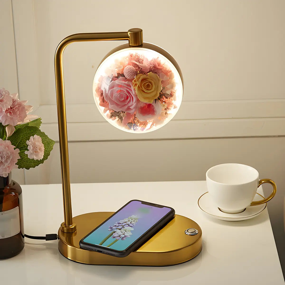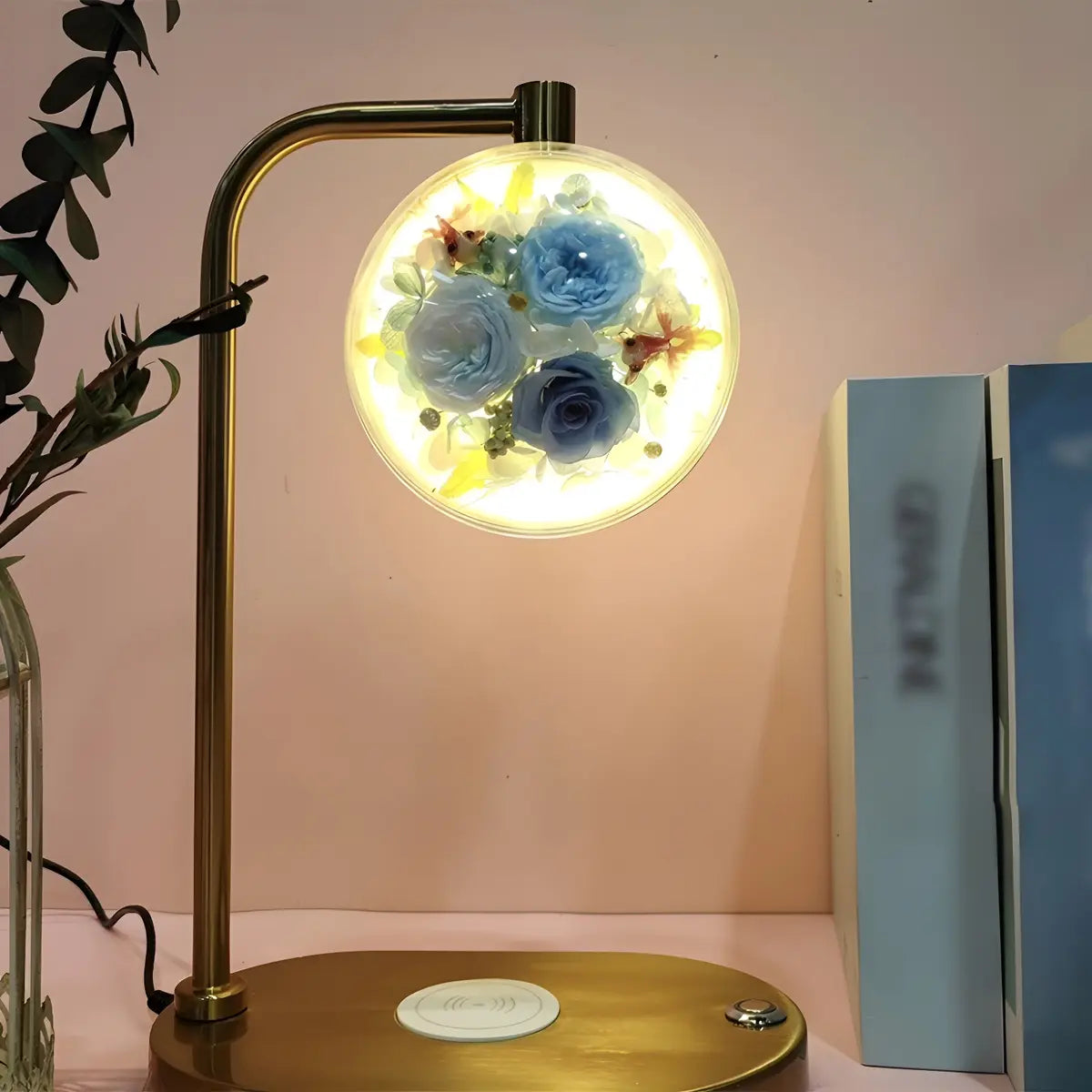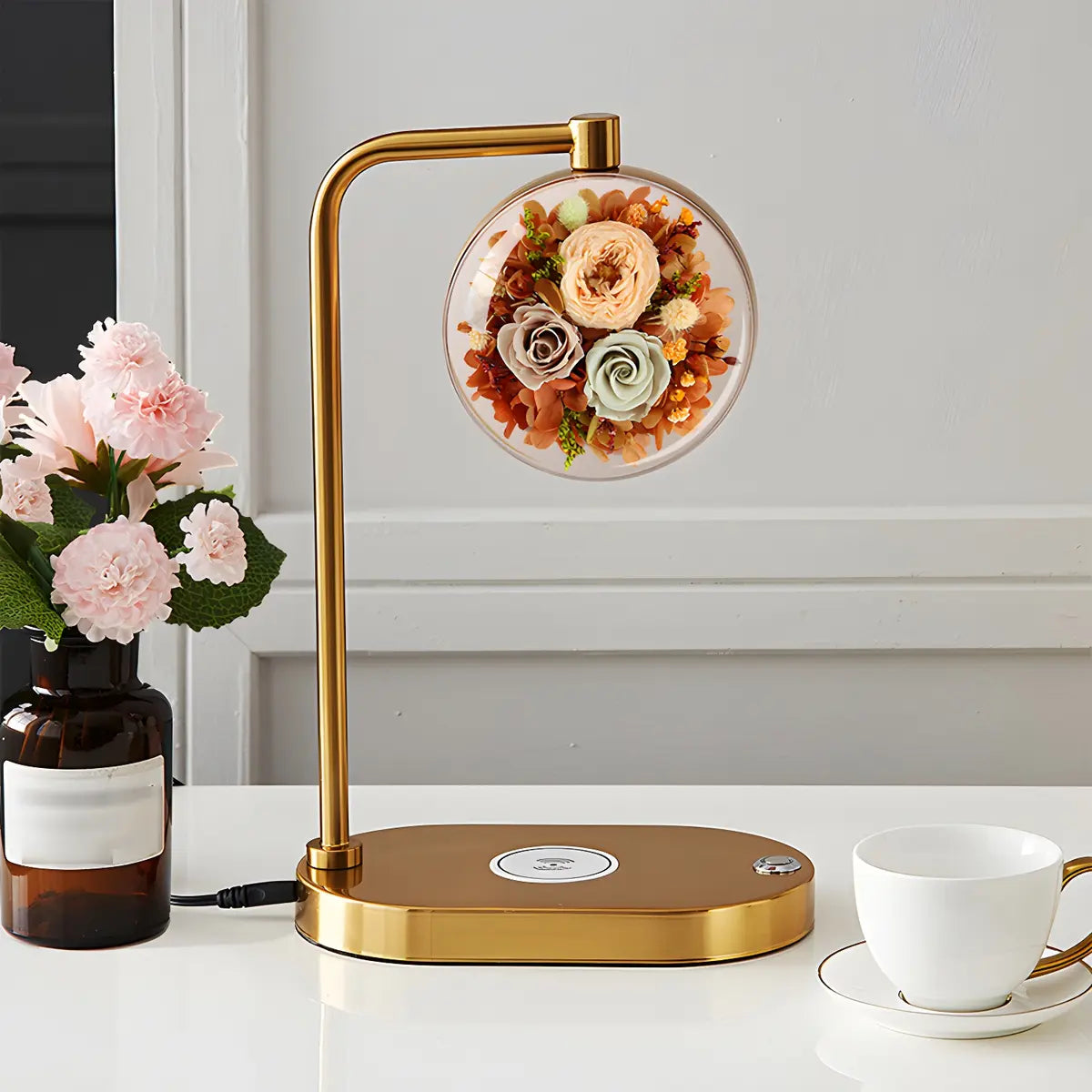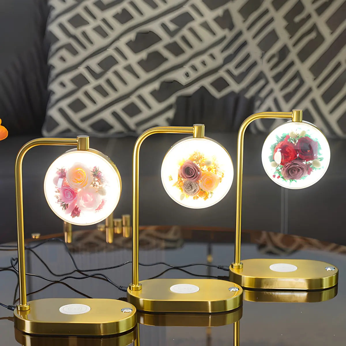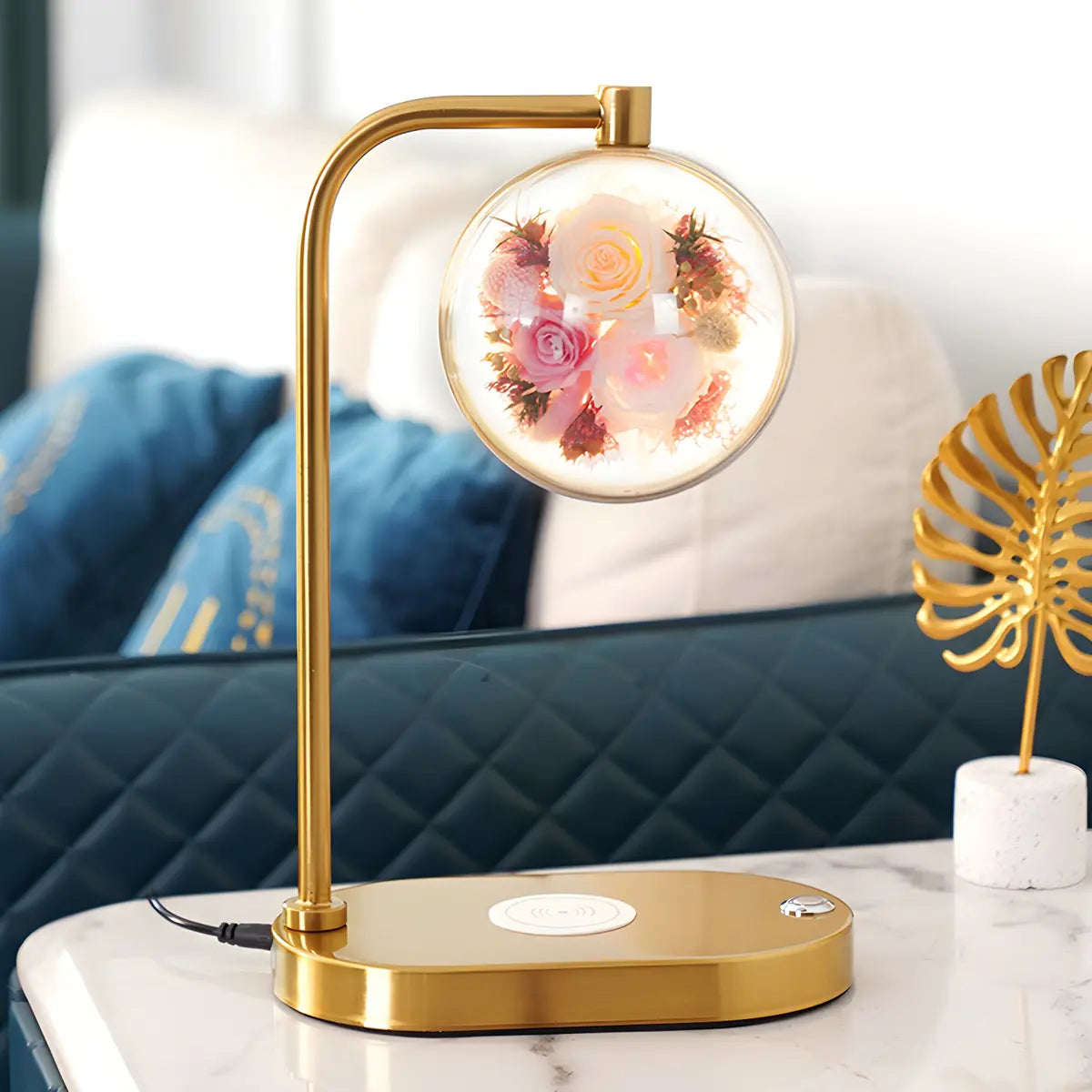 ZOWALA - Elegant Gold Glass Round Flower Accent Table Lamp