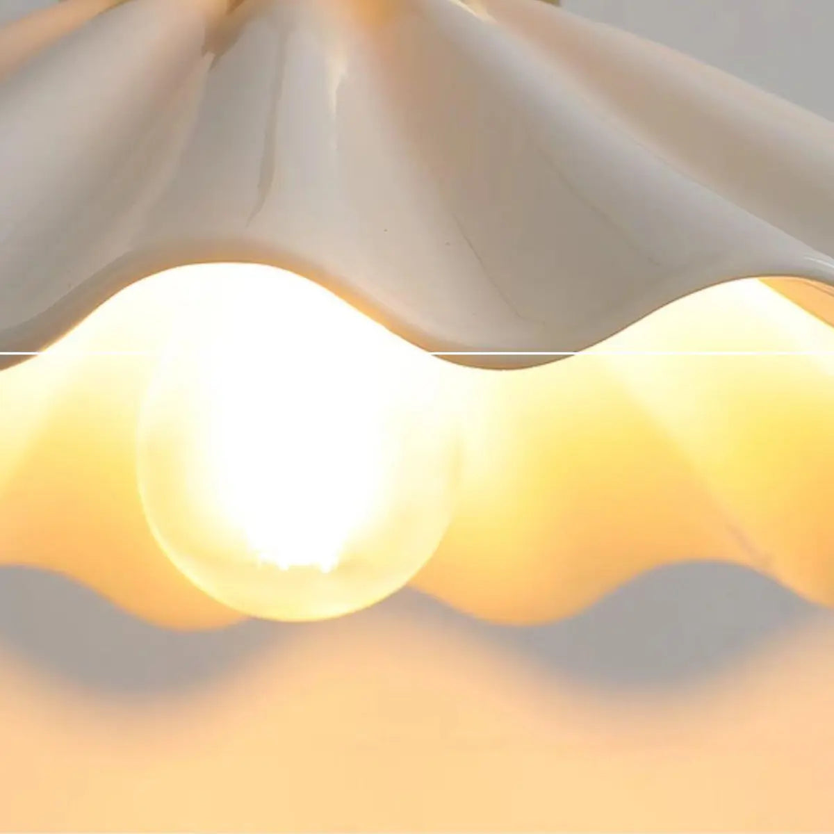 This pendant light features an elegant golden ceramic wavy lampshade design, adding a unique artistic touch to any interior, perfectly combining modern and classic styles. Its soft curves effectively soften the light, creating a warm and sophisticated atmosphere, becoming the visual focal point of any space.