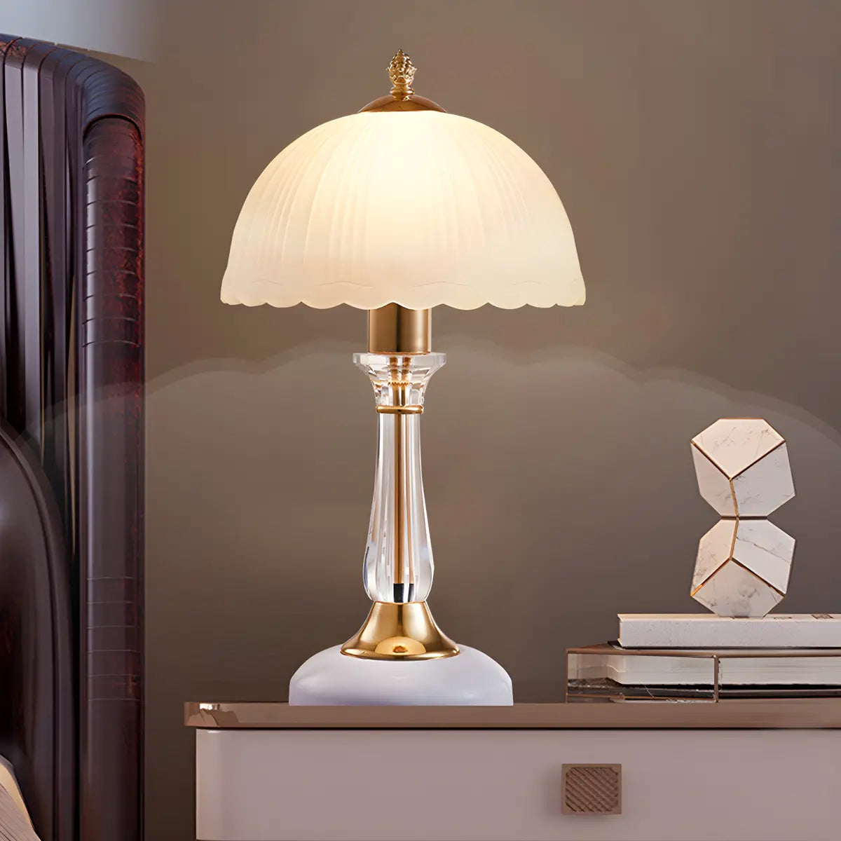 ZOWALA - Elegant Gold-White Dome Glass Bedside Table Lamp