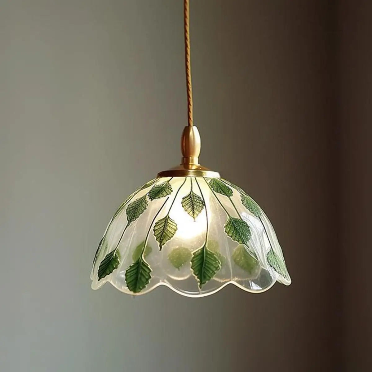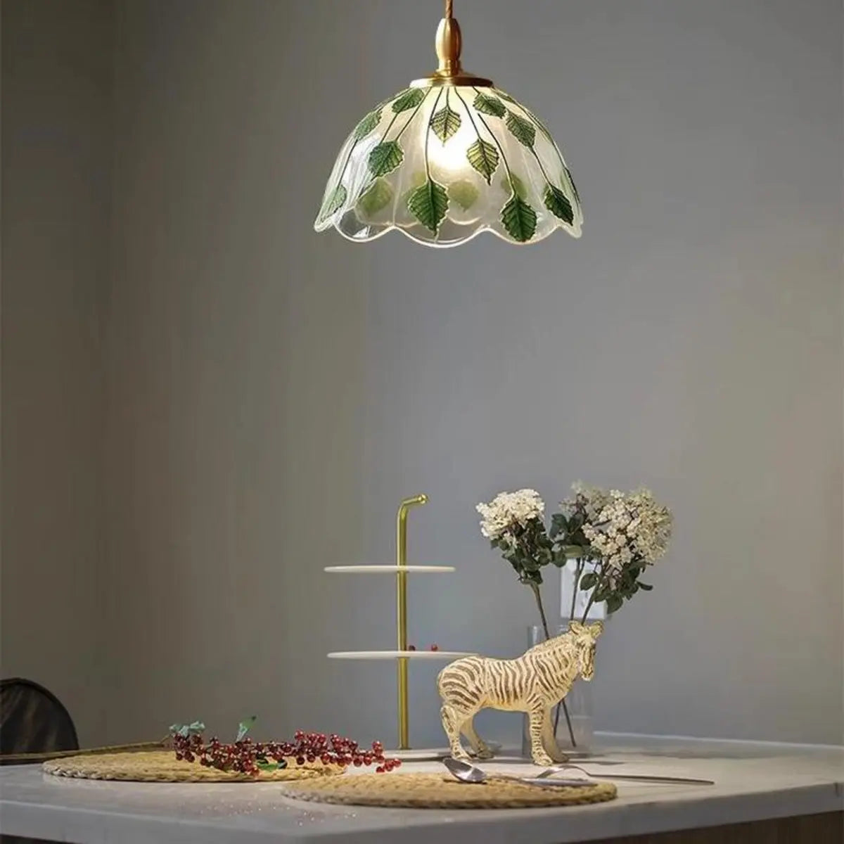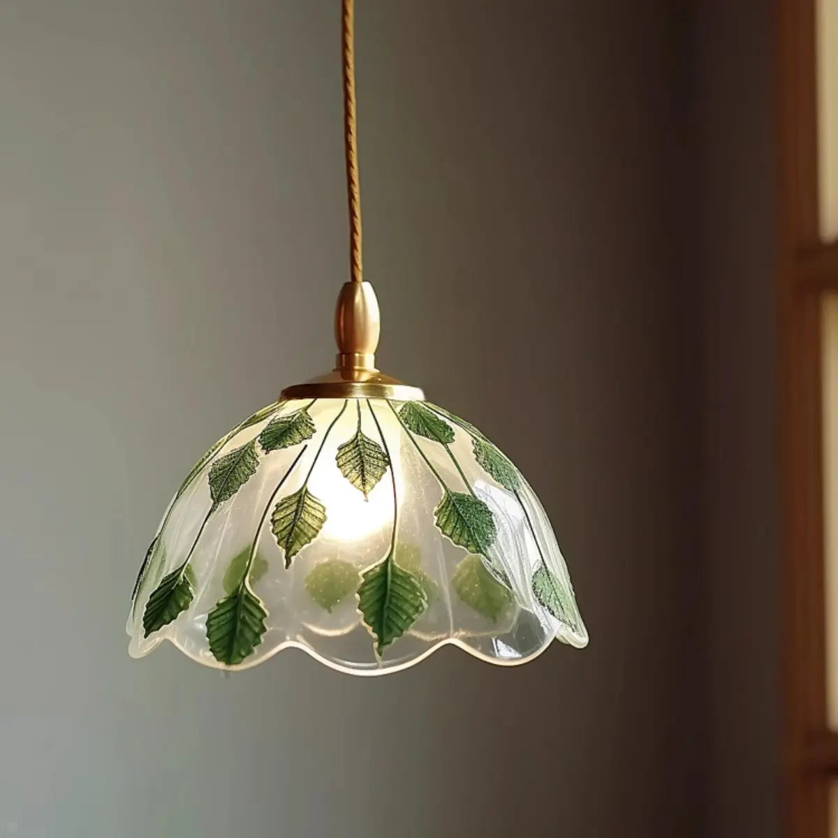 ZOWALA - Elegant Green Leaf Clear Glass Dome Pendant Light